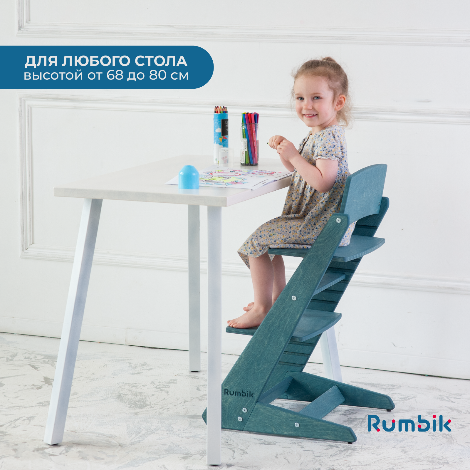 СохранитьДетский растущий стул для кормления и учебы Rumbik Kit, морская волна / растущий стульчик для школьника интересное: