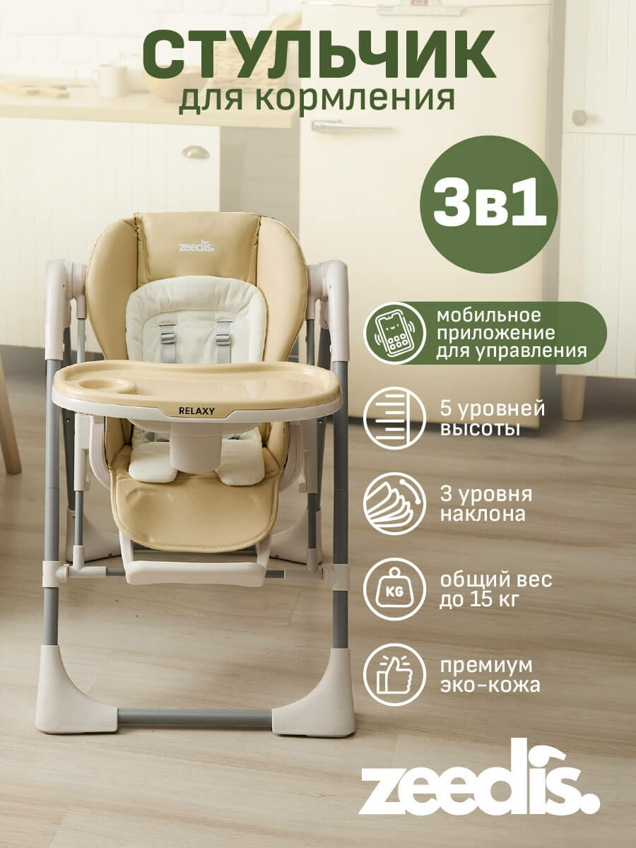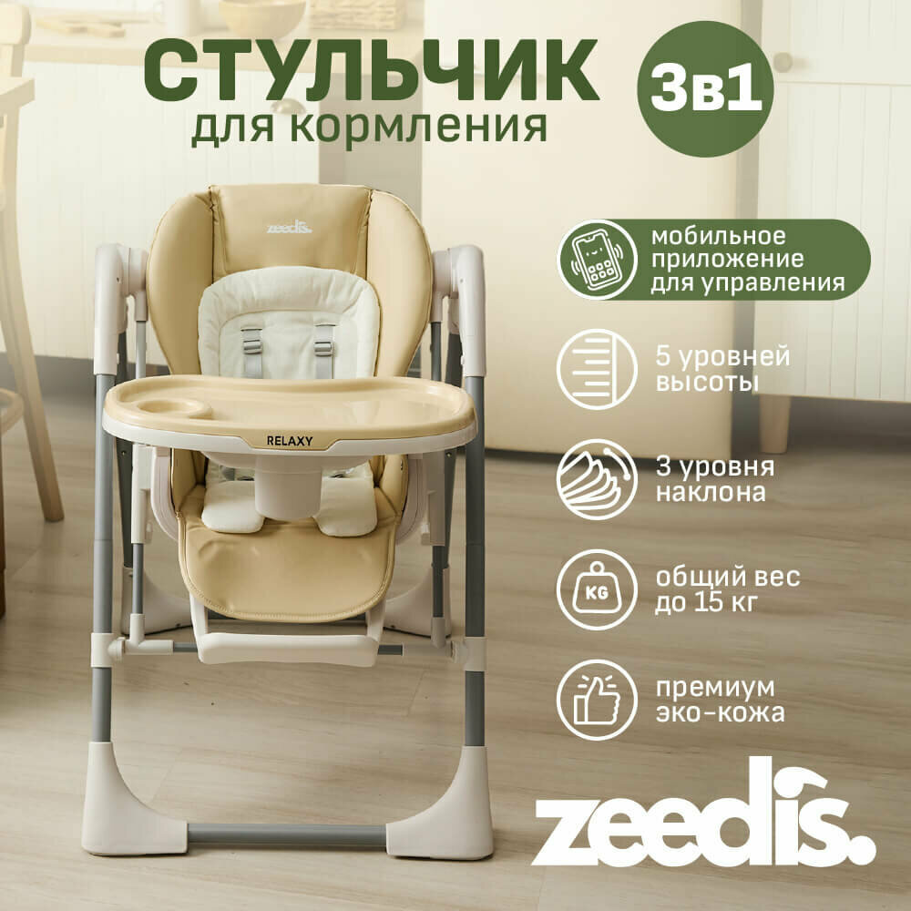 Стульчик для кормления ребенка складной 3в1 ZEEDI'S Relaxy стульчик, качели, шезлонг. интересное: