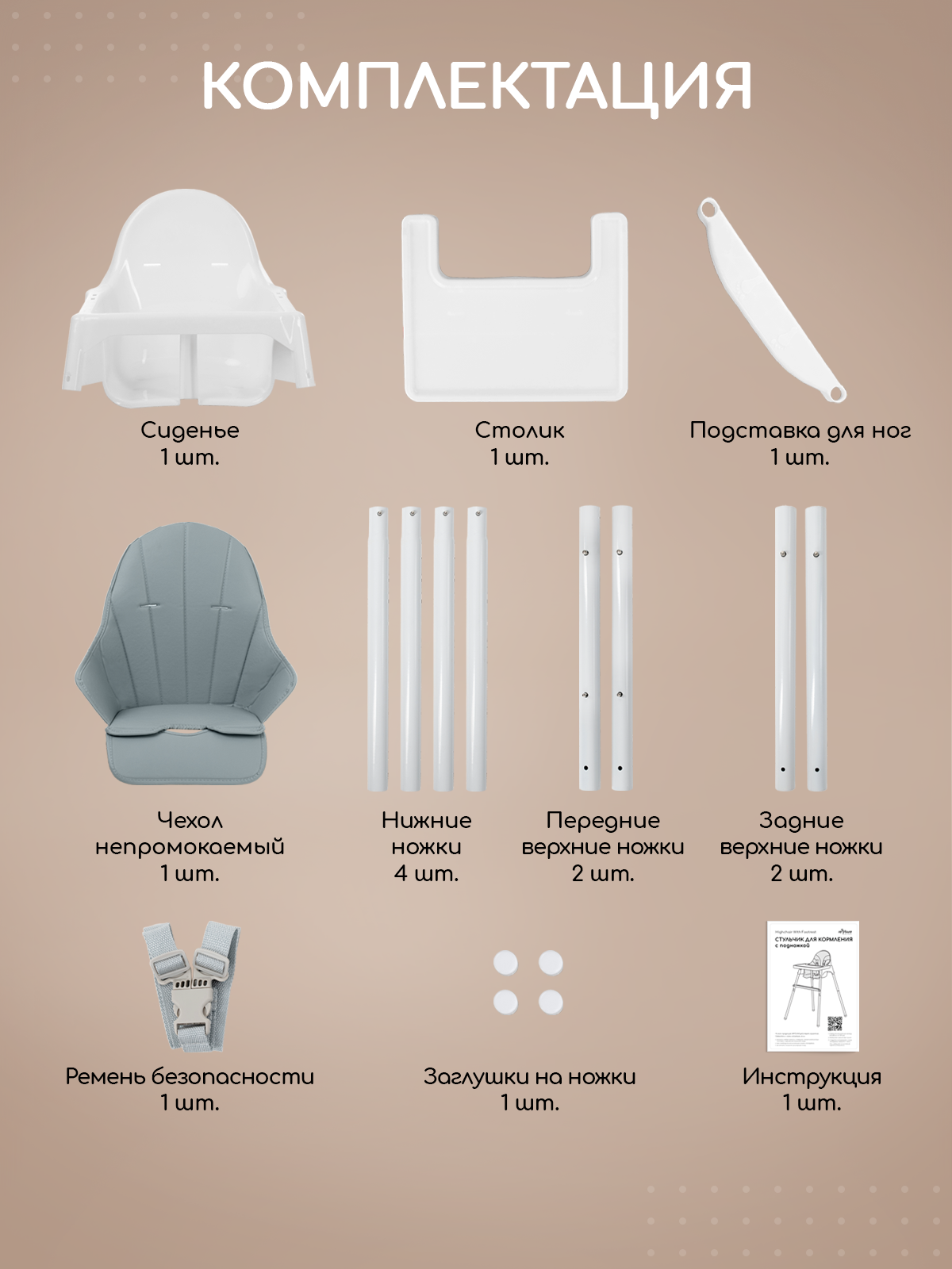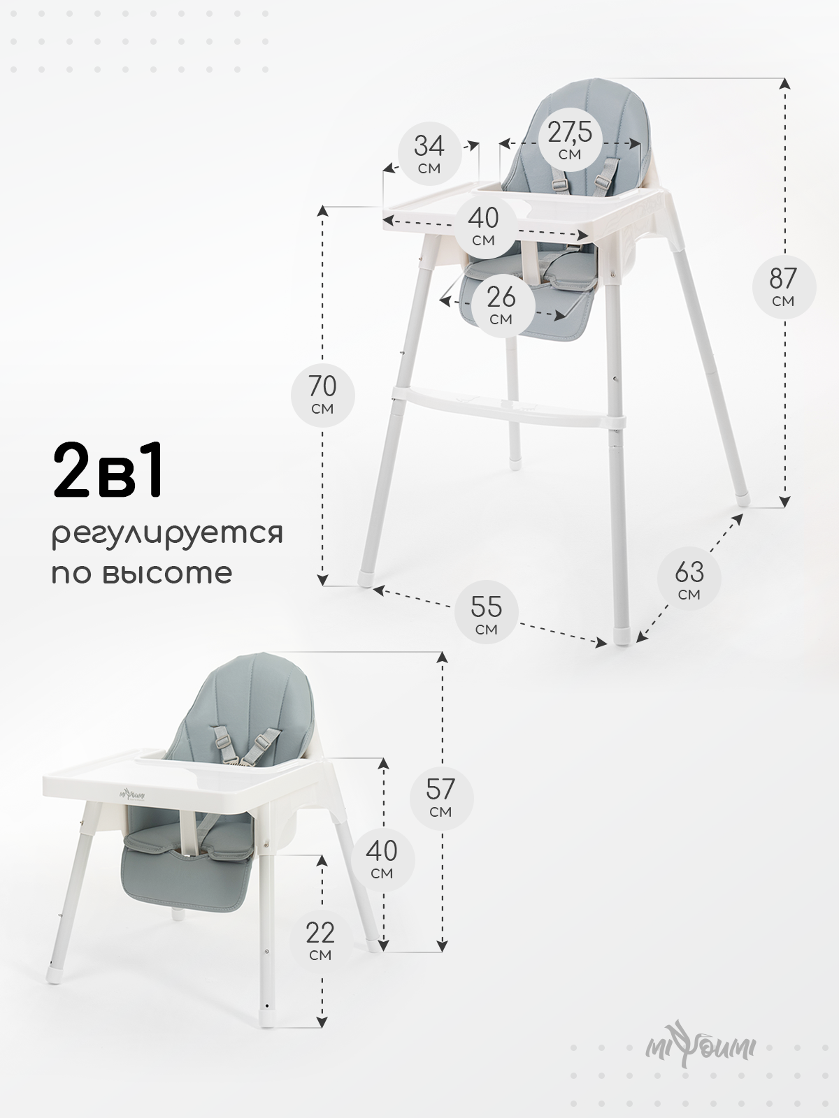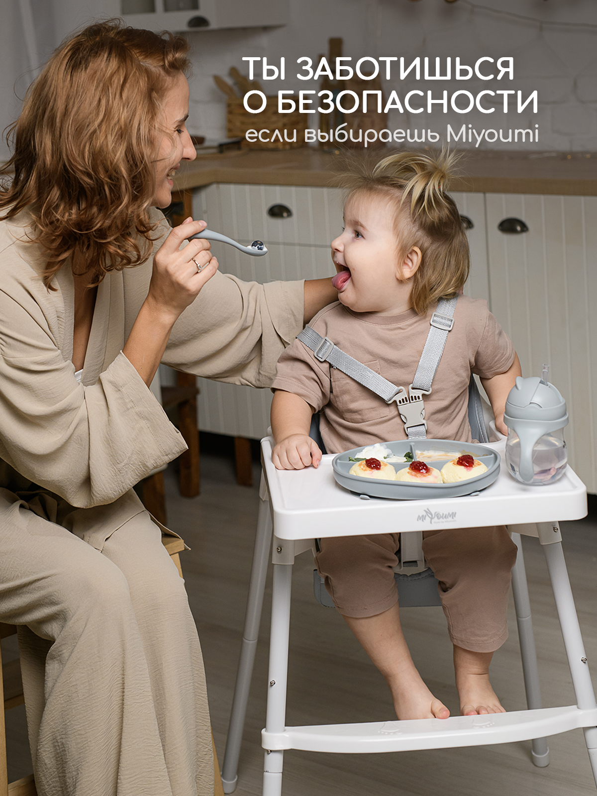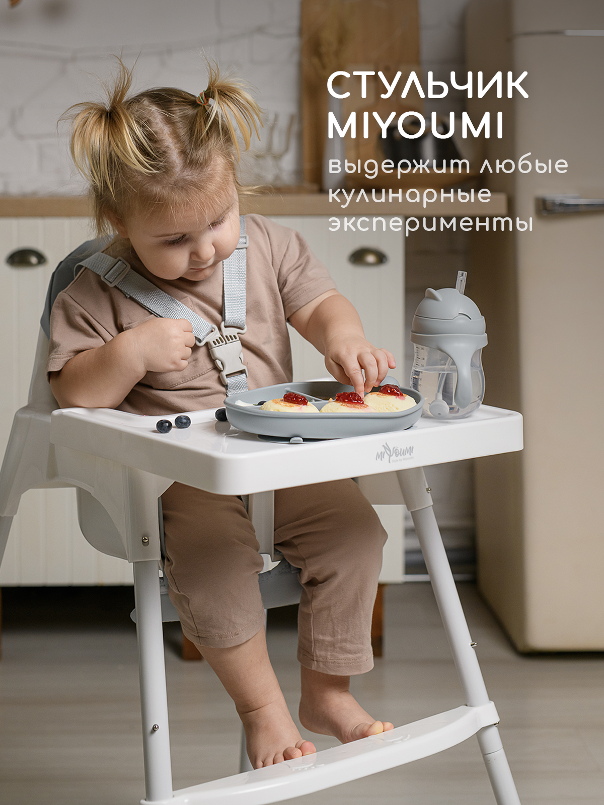 Стульчик для кормления "Miyoumi", складной, с подножкой, светло-серый интересное: