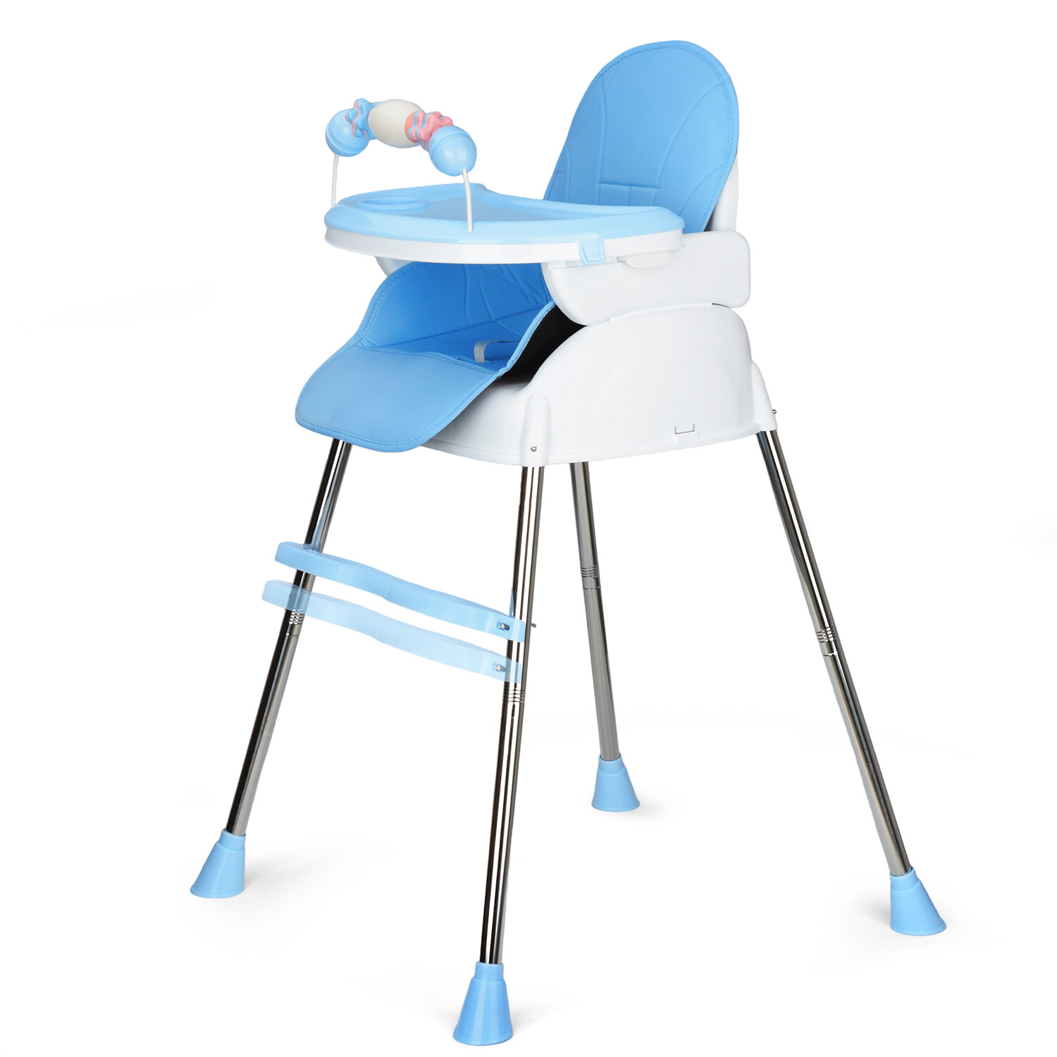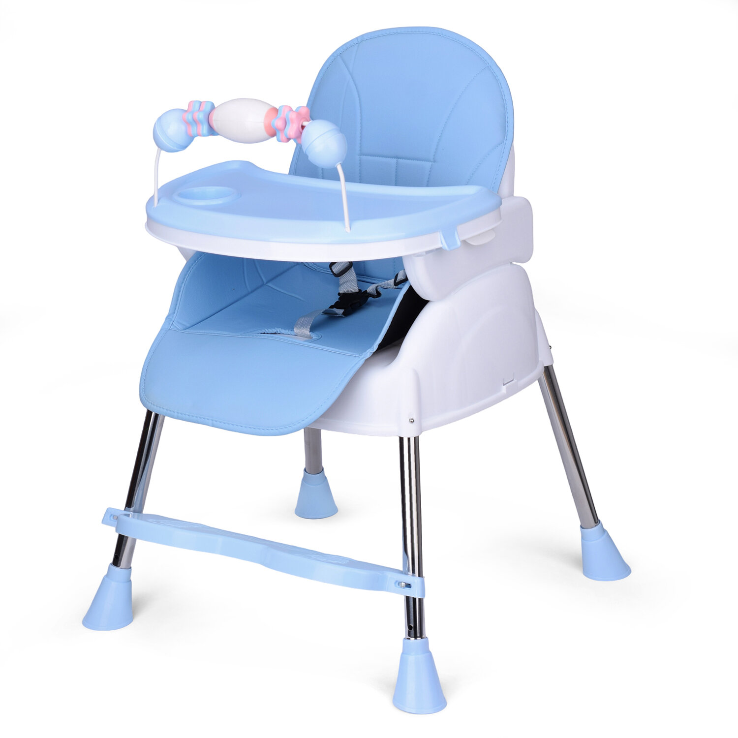 Купить Стульчик для кормления детский Prammy, экокожа, съемный столик, регулируемая высота, для детей от 6 мес. голубой