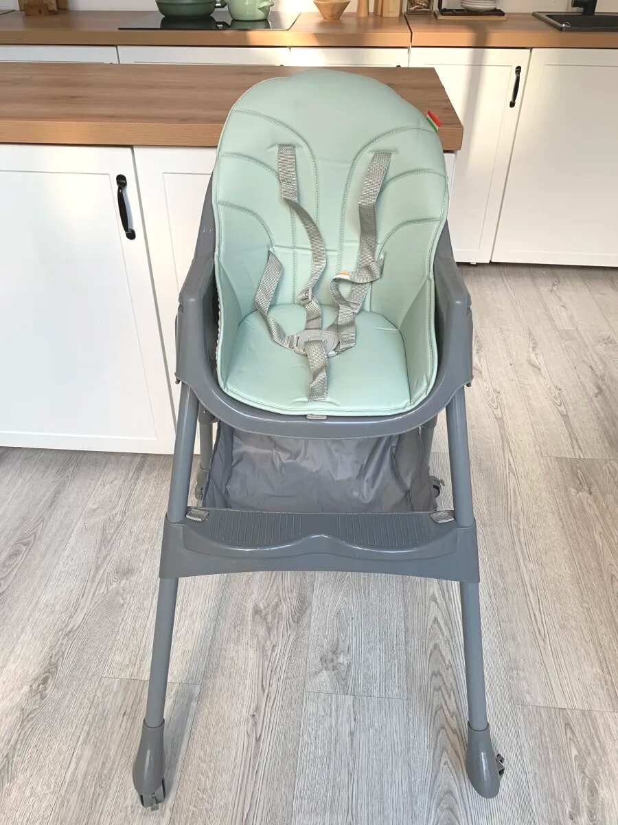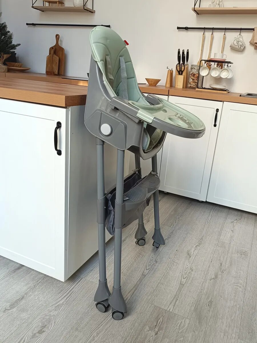 Трансформер Стул для кормления детский 2в1, шезлонг, складной, растущий стульчик для ребенка, от 6 месяцев до 3 лет, до 20 кг, зеленый.