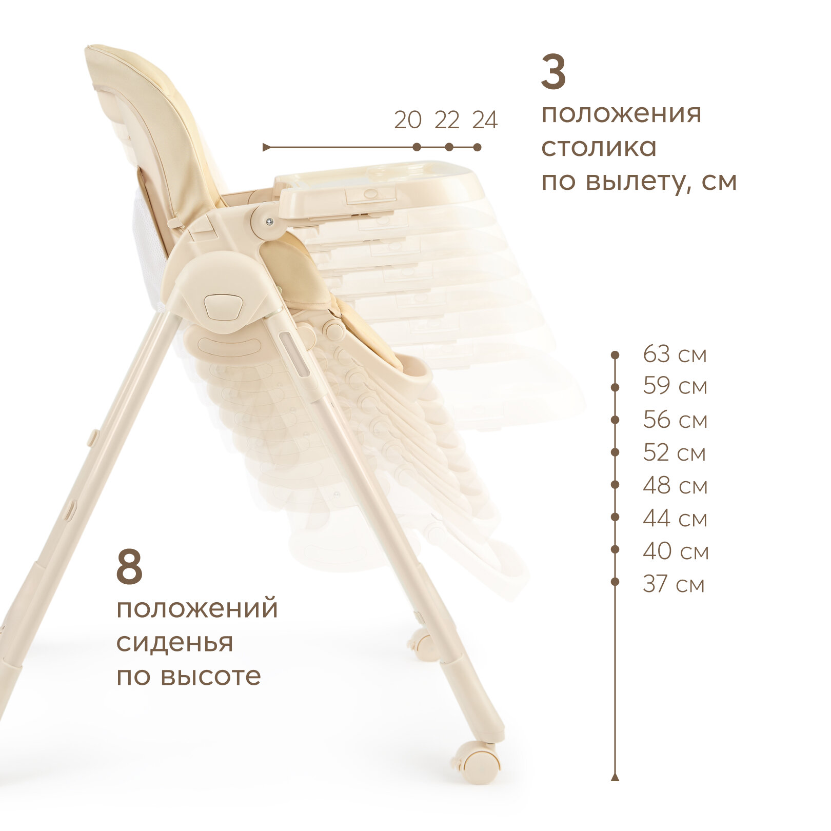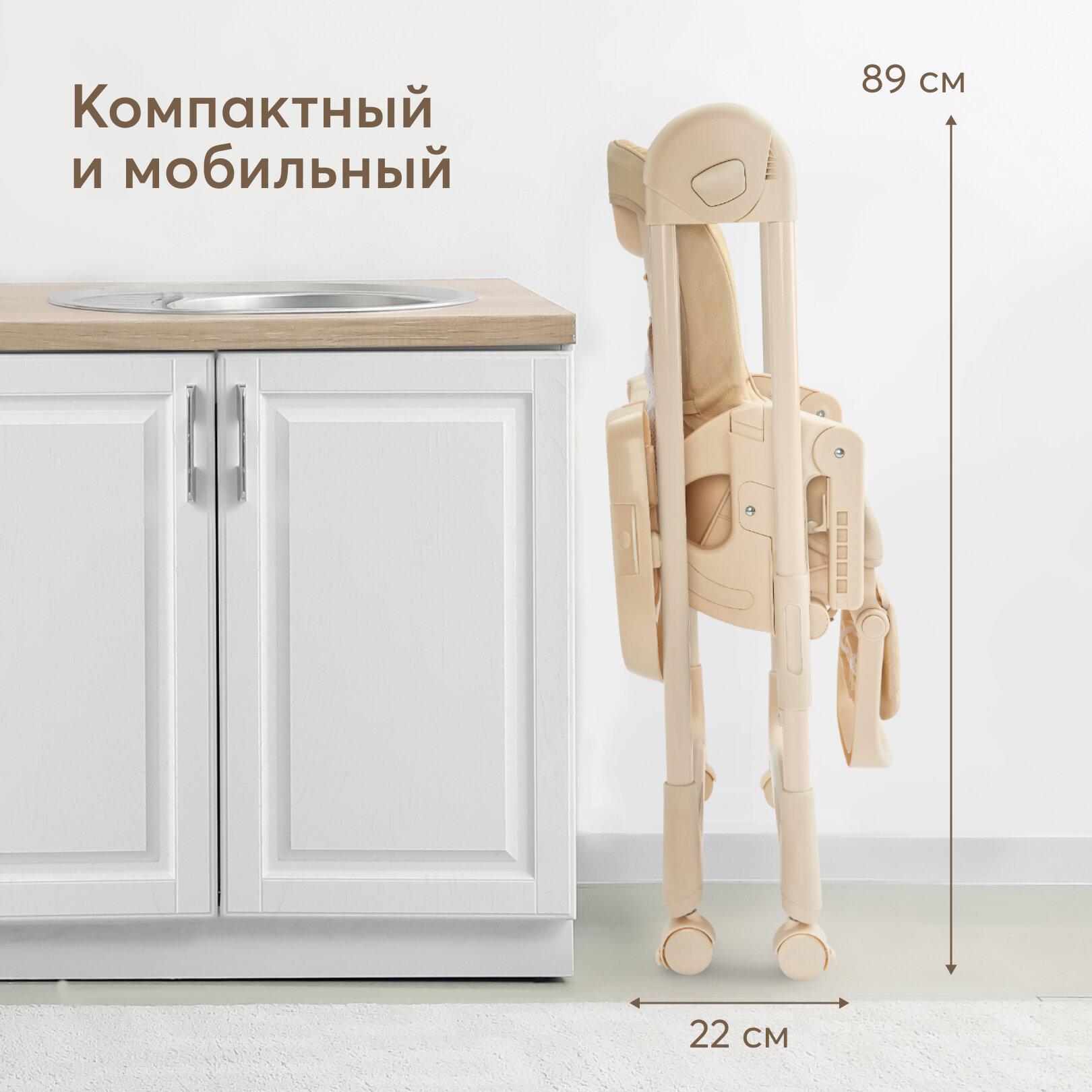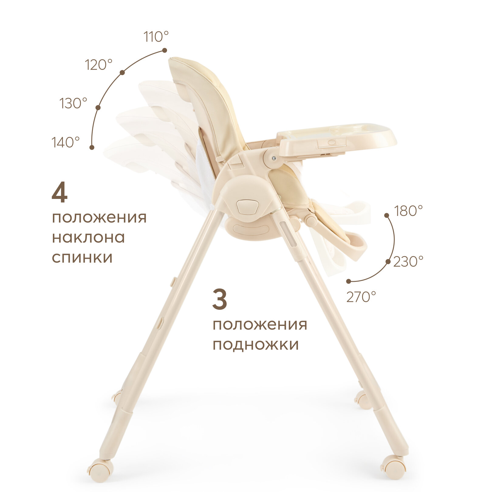 Стульчик для кормления Happy Baby WILLIAM PRO, до 20 кг, 4 поворотных колеса, светло-бежевый интересное: