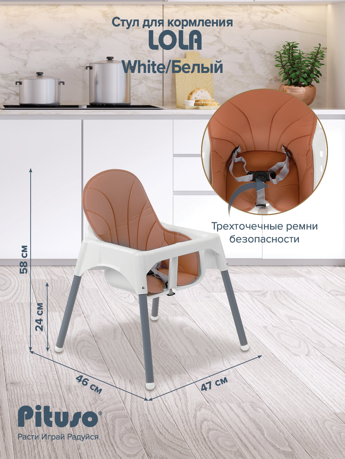 Стульчик для кормления ребенка Pituso "Lola", съемный чехол, цвет белый интересное: