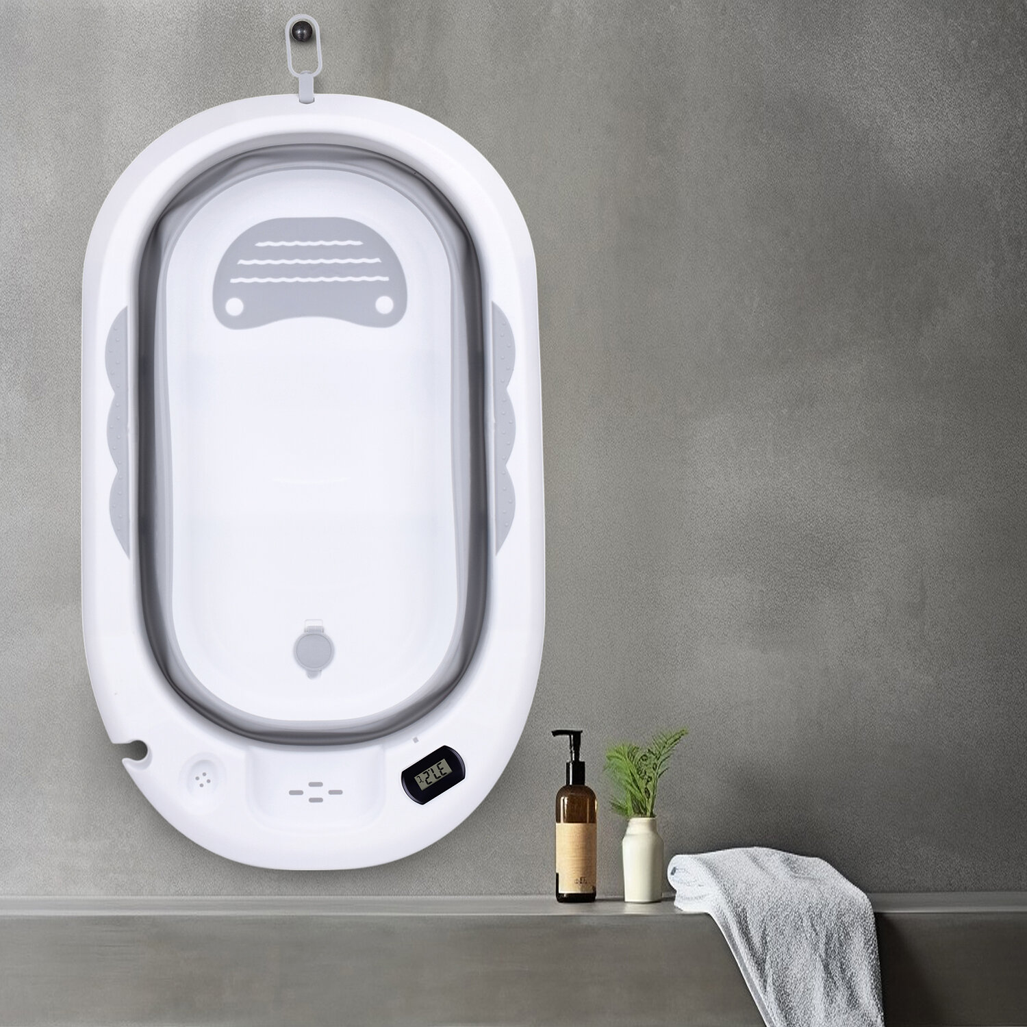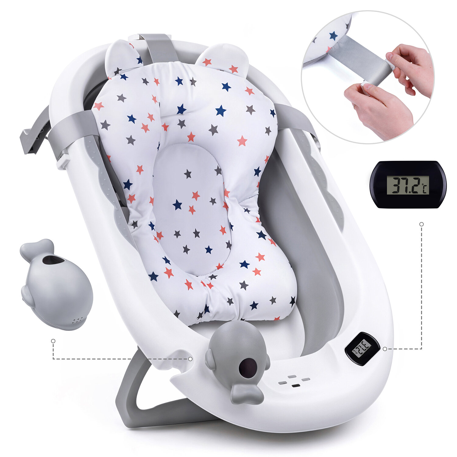 Складная ванночка для купания младенцев с термометром, для новорожденных и детей до 18 месяцев, с шапочкой и плавающим ковриком