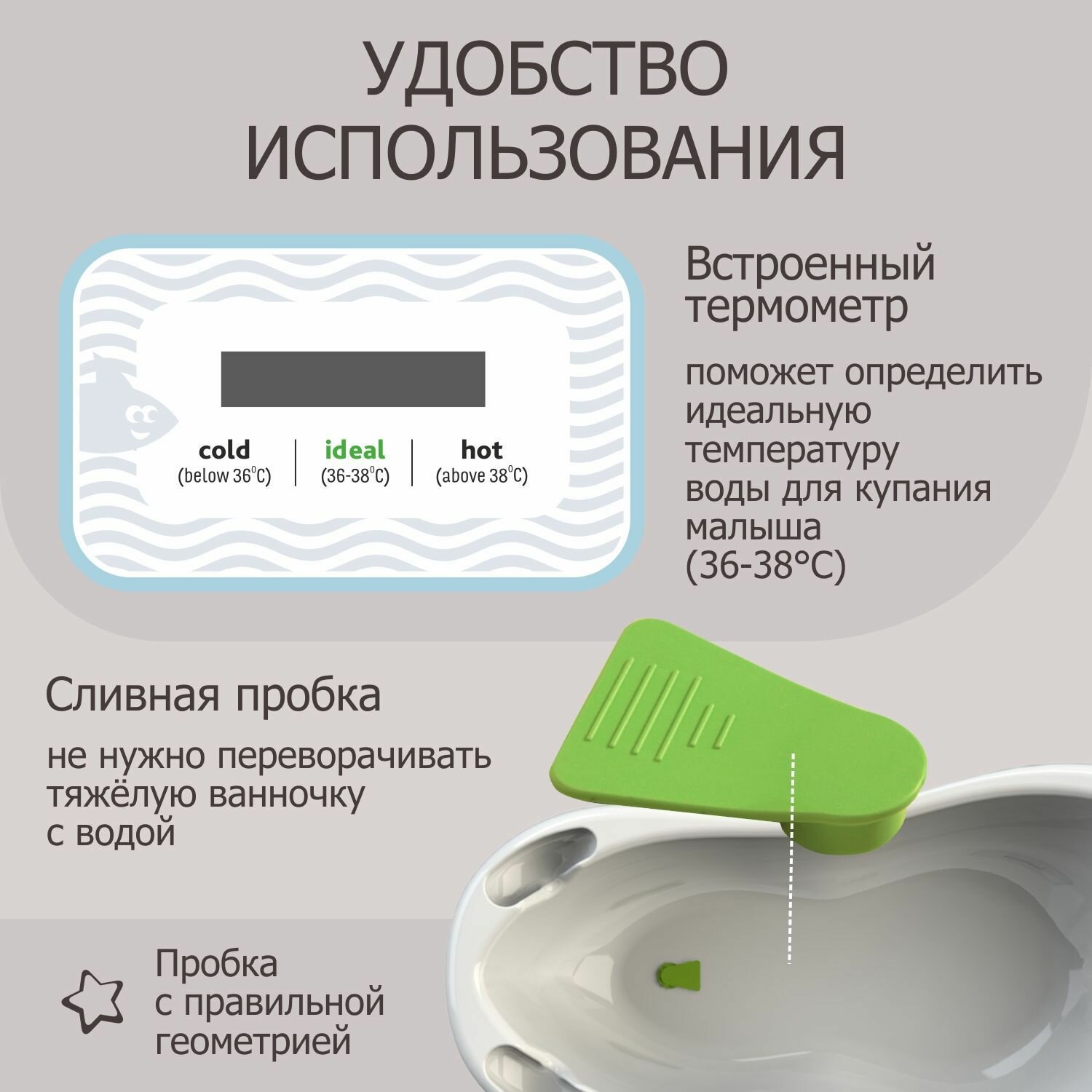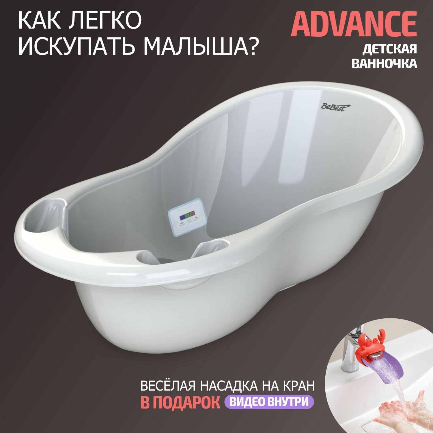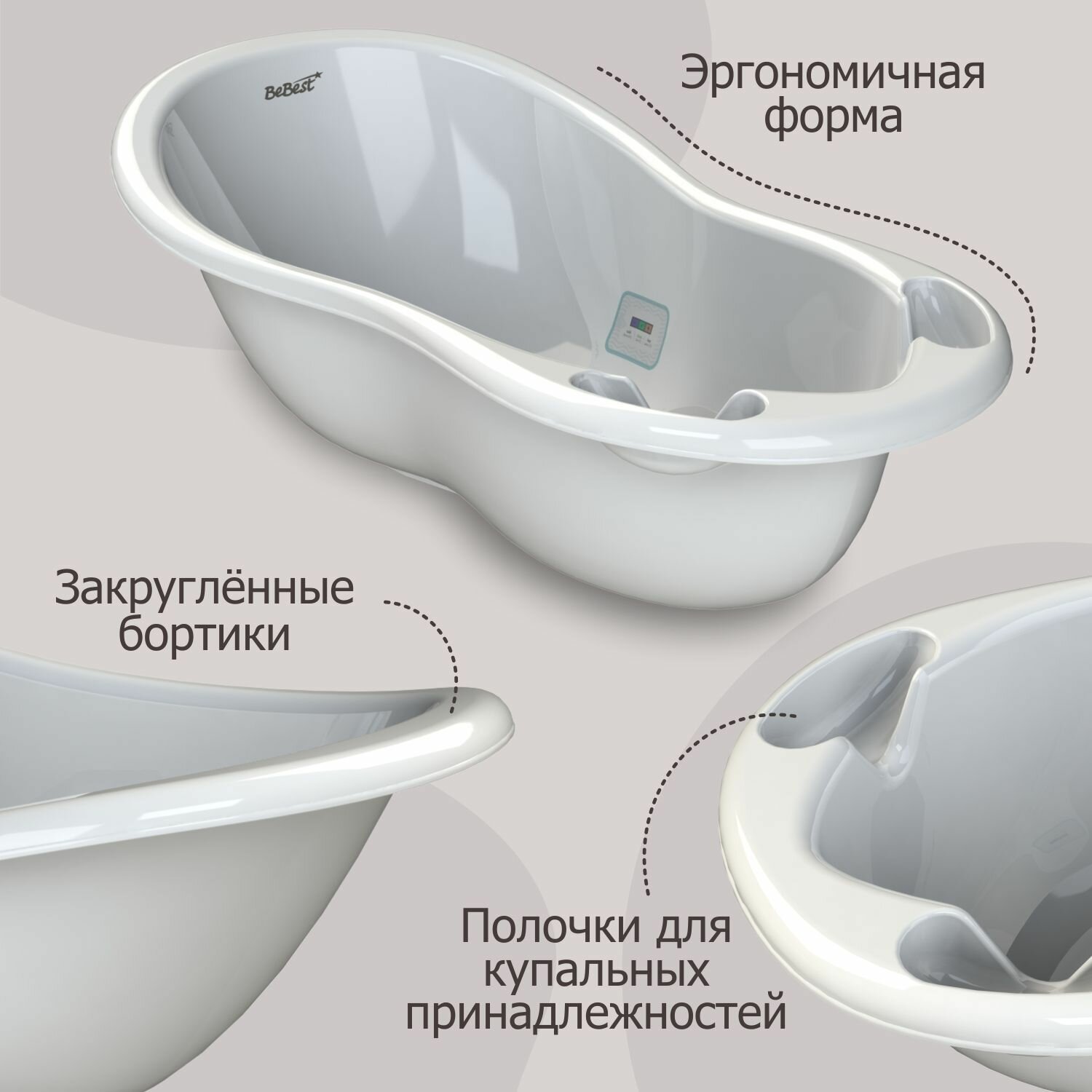 Ванночка для купания новорожденных BeBest Advance с термометром, белый интересное: