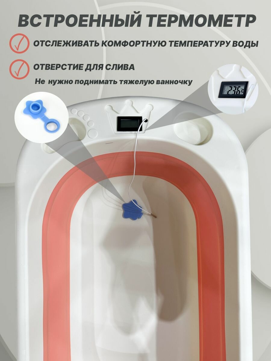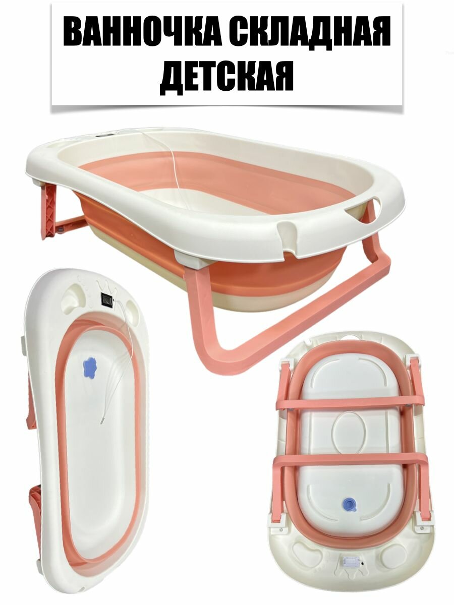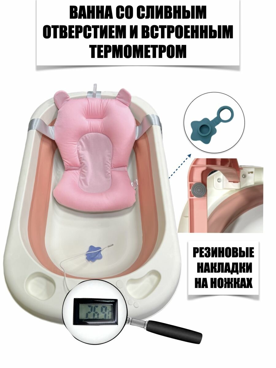 Ванночка для купания новорожденных складная с матрасом-гамаком /розовая/Детская ванна с термометром/от 0+ интересное: