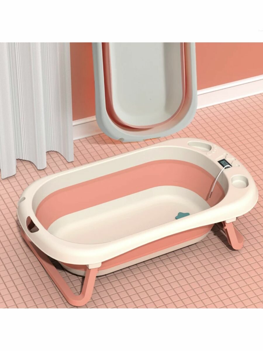 Купить Ванночка для купания новорожденных складная с матрасом-гамаком /розовая/Детская ванна с термометром/от 0+