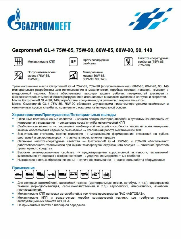 Сохранитьмасло gazpromneft 75w90 api gl-4 1л п/с интересное: