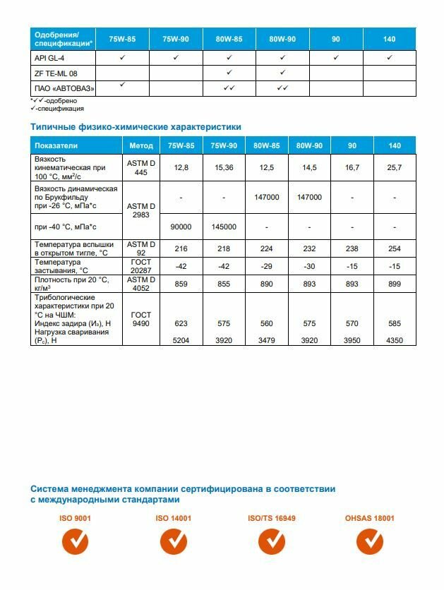 | Вязкость по SAE | 75W-90 |