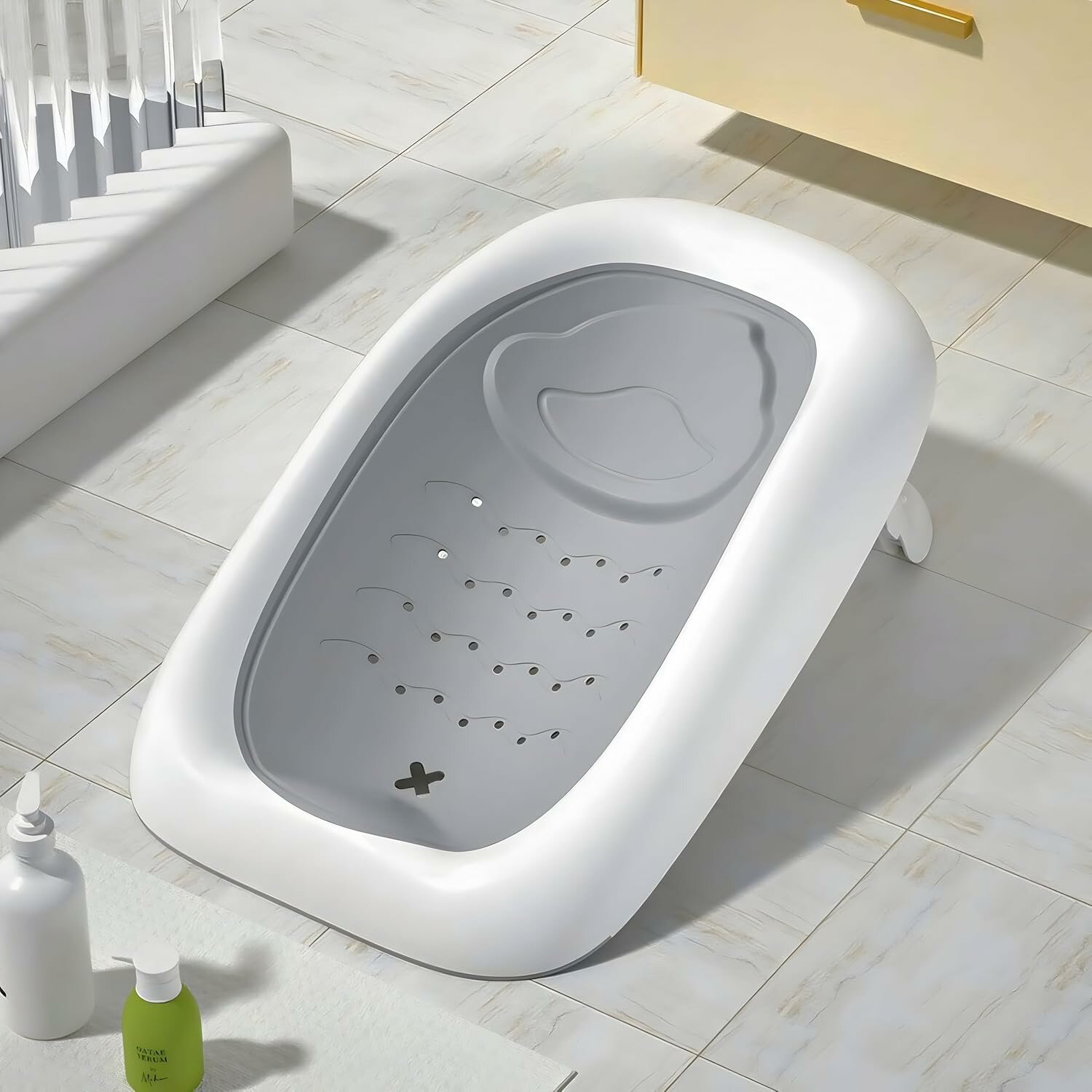 Складная ванночка для купания младенцев с термометром, для новорожденных и детей до 18 месяцев, с шапочкой и плавающим ковриком