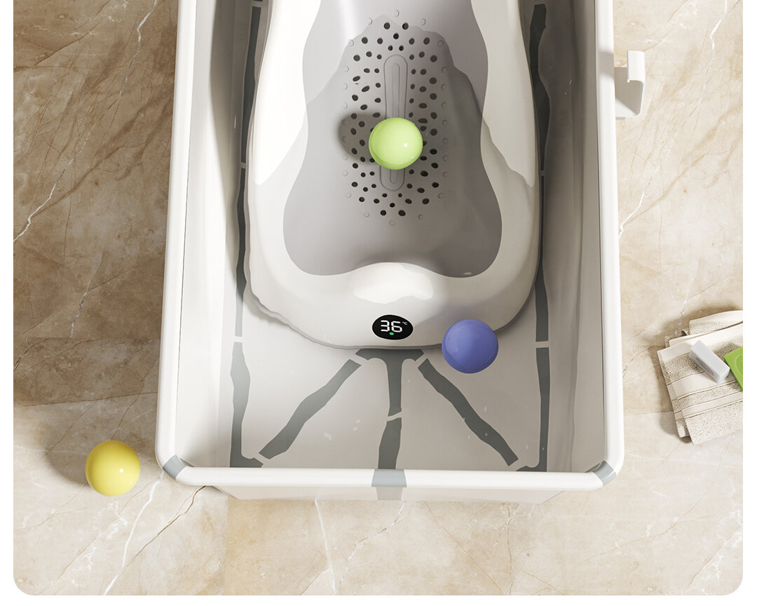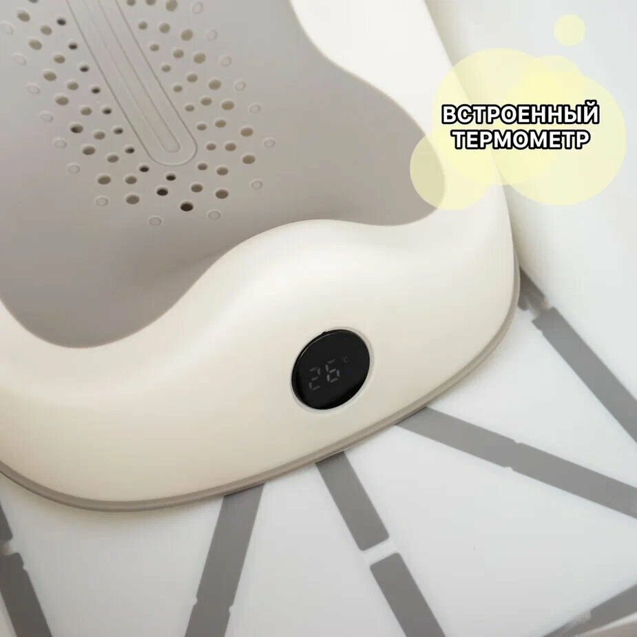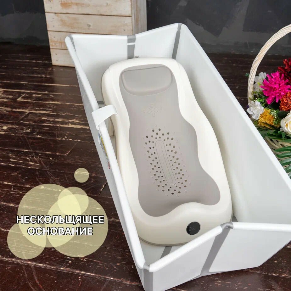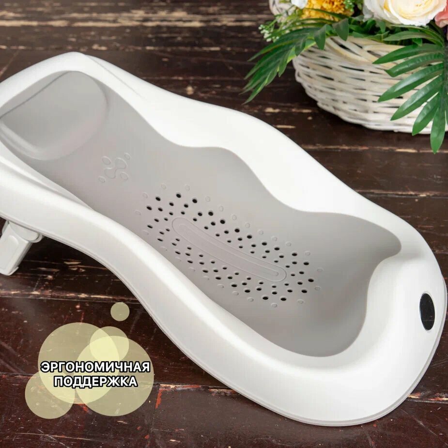Ванночка XL для купания новорожденных и малышей, складная, с горкой и термометром, серая интересное: