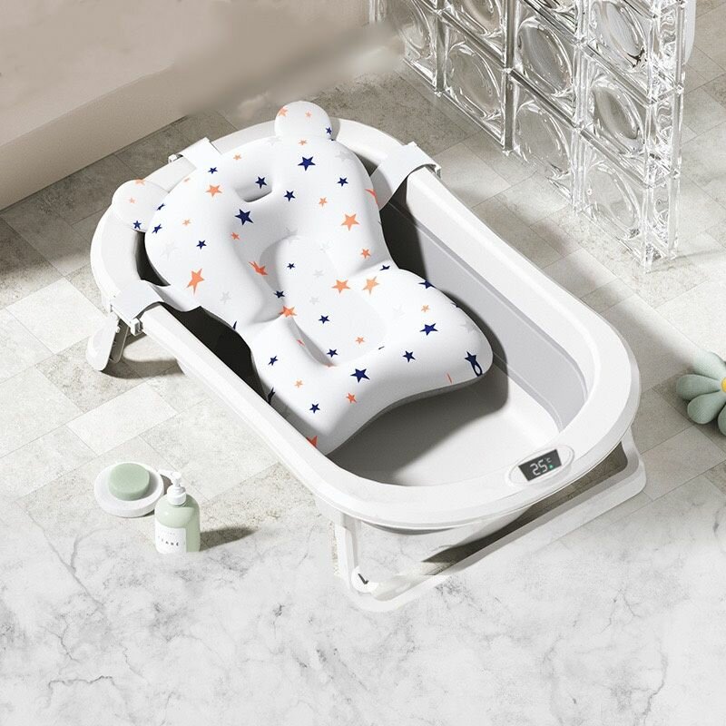 Складная ванночка для купания младенцев с термометром, для новорожденных и детей до 18 месяцев, с шапочкой и плавающим ковриком