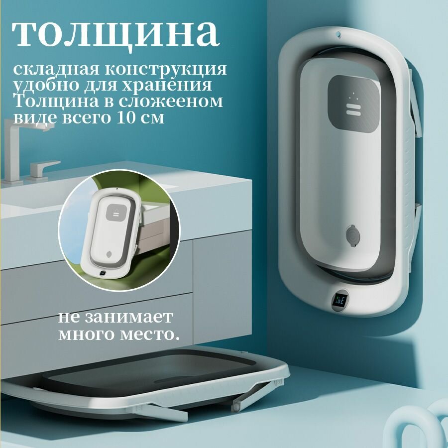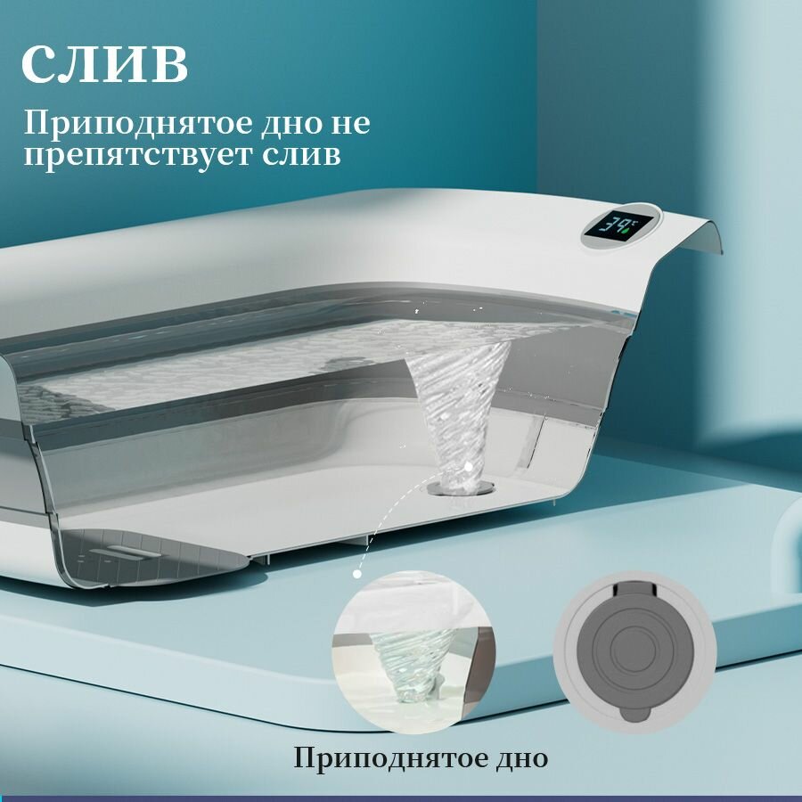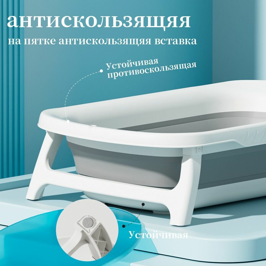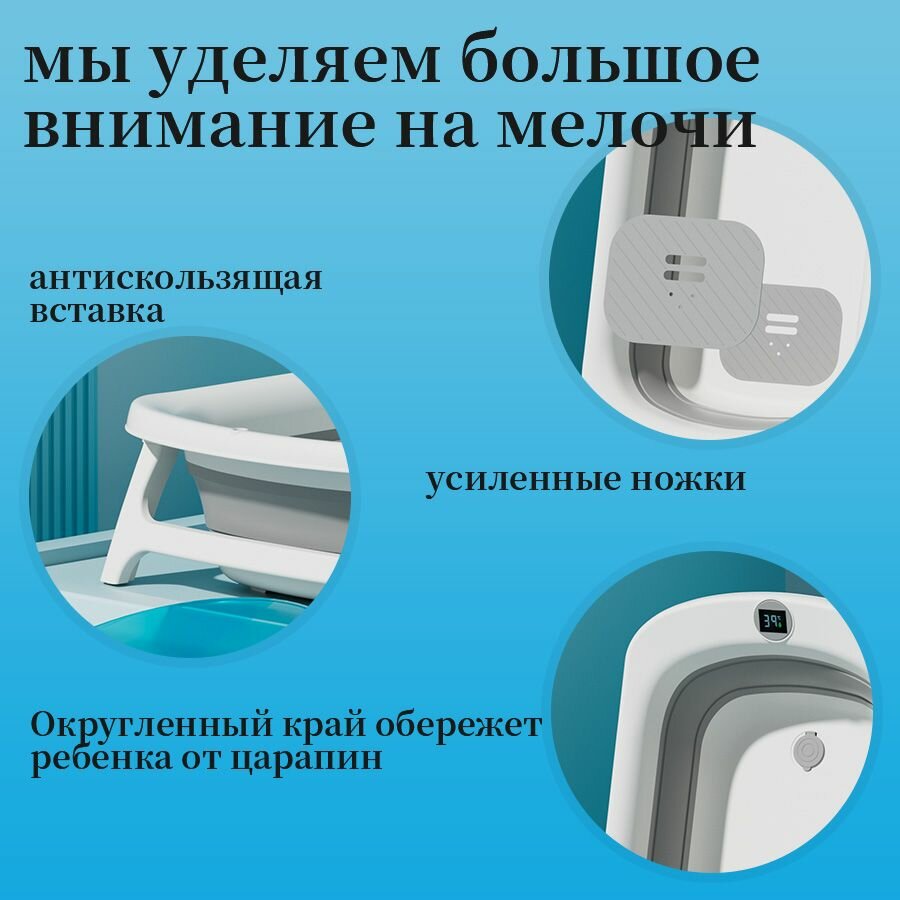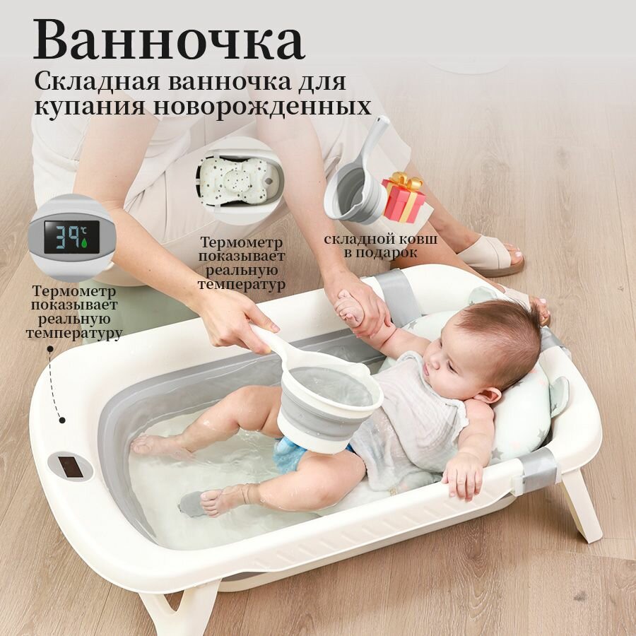 Ванночка для купания Большая складная новорожденных детская/серый/с термометром +Матрас, ковш интересное: