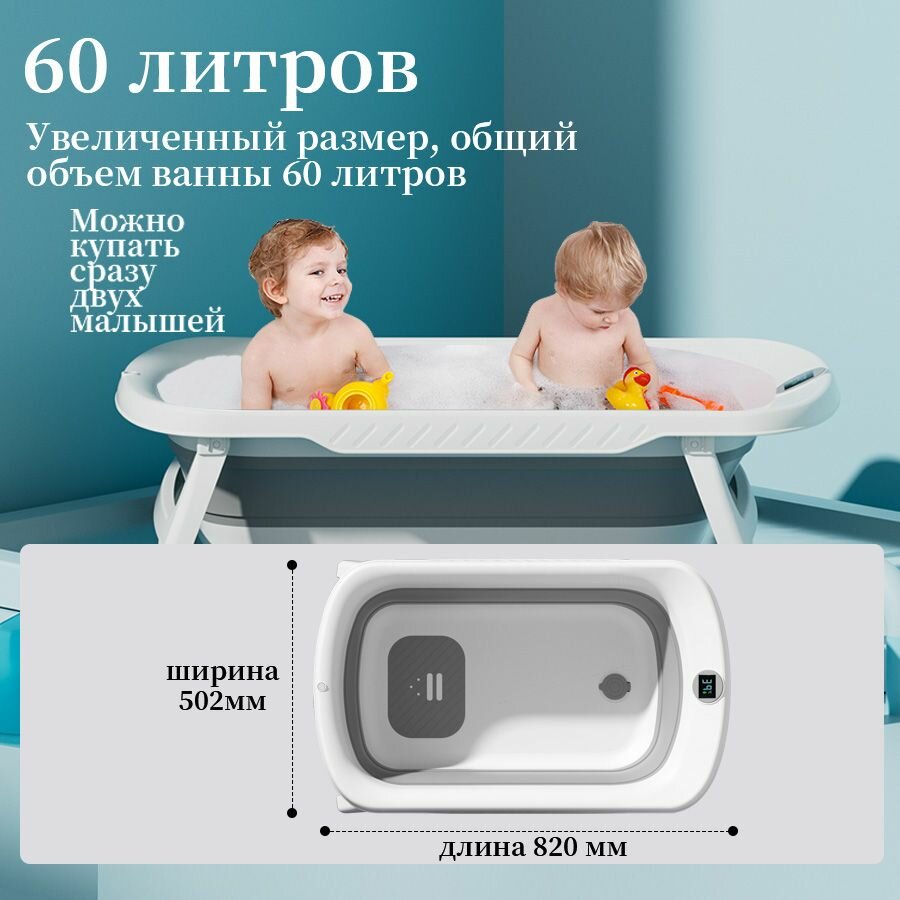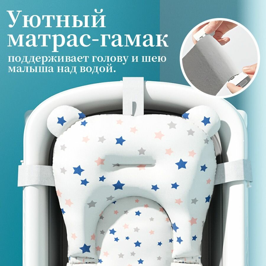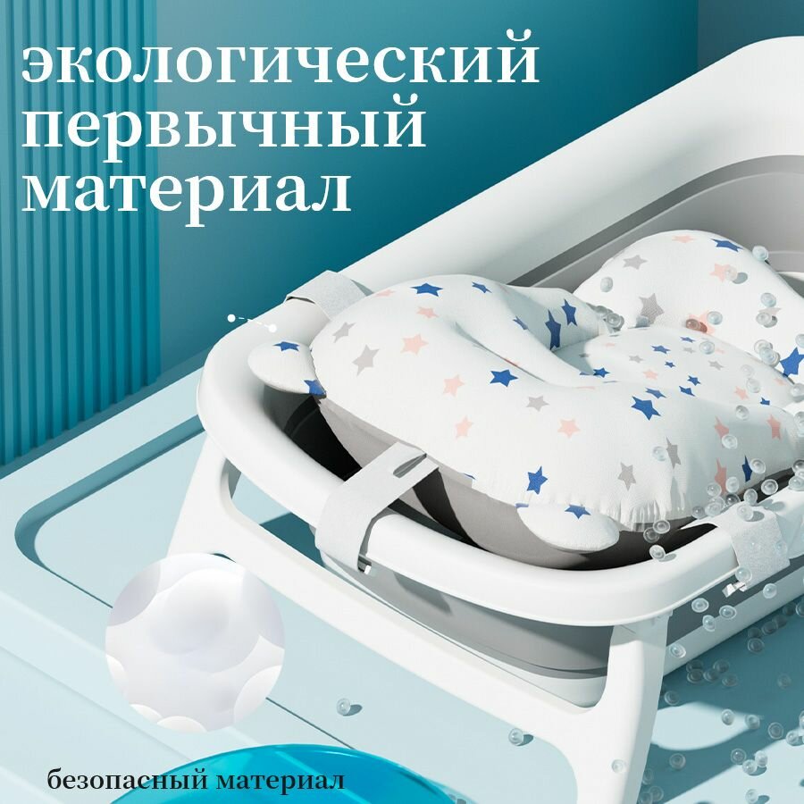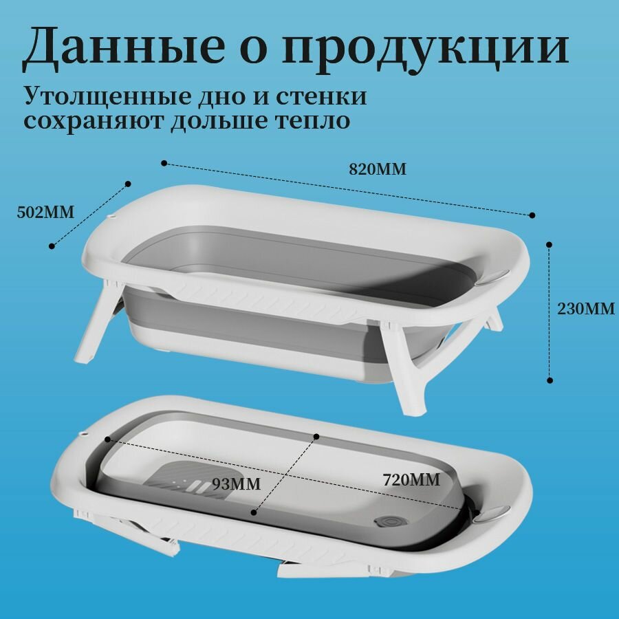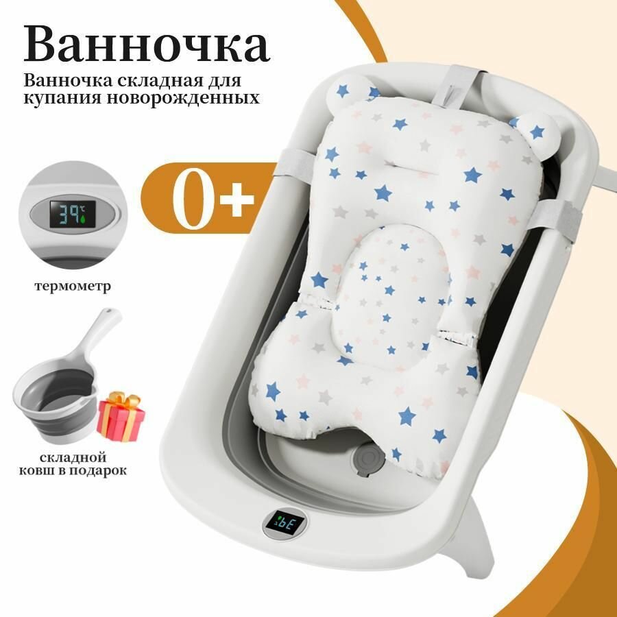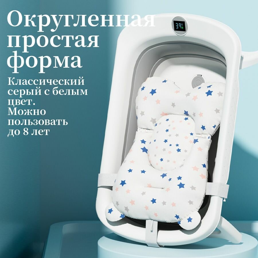 Купить Ванночка для купания Большая складная новорожденных детская/серый/с термометром +Матрас, ковш