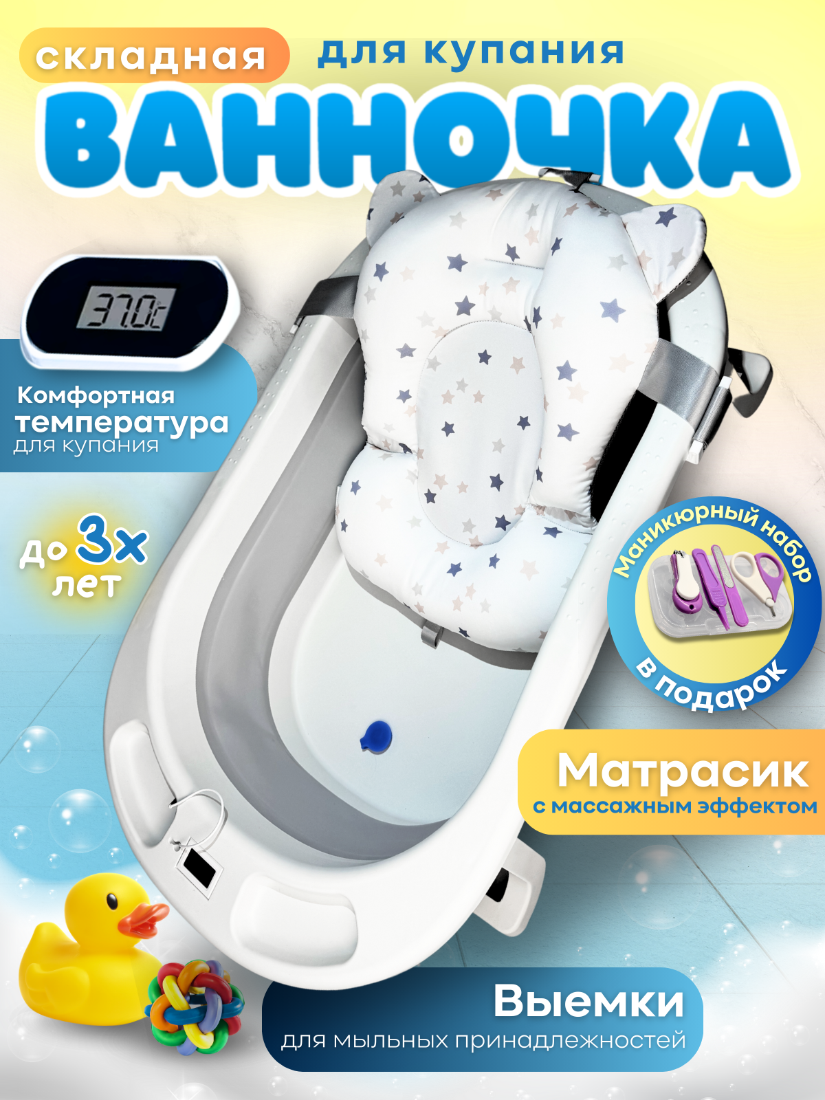 Складная ванночка для купания младенцев с термометром, для новорожденных и детей до 18 месяцев, с шапочкой и плавающим ковриком