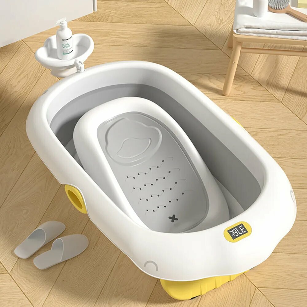 Ванночка для купания новорожденных с горкой и термометром,серый интересное: