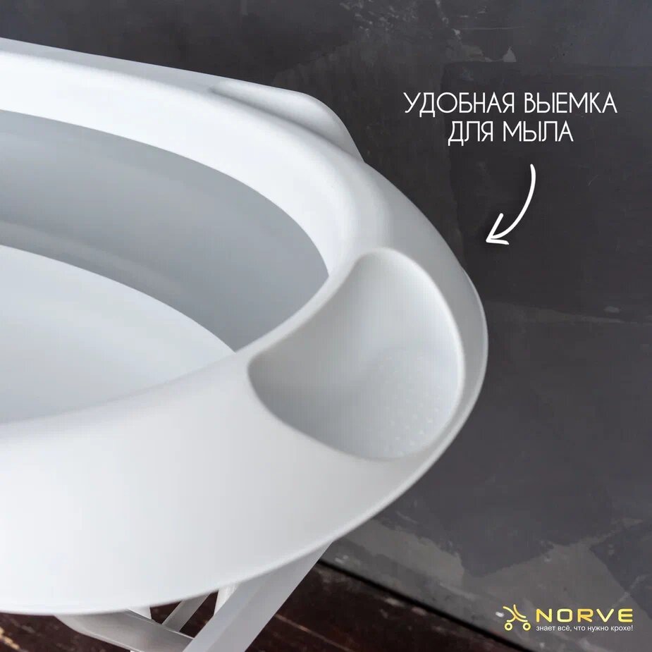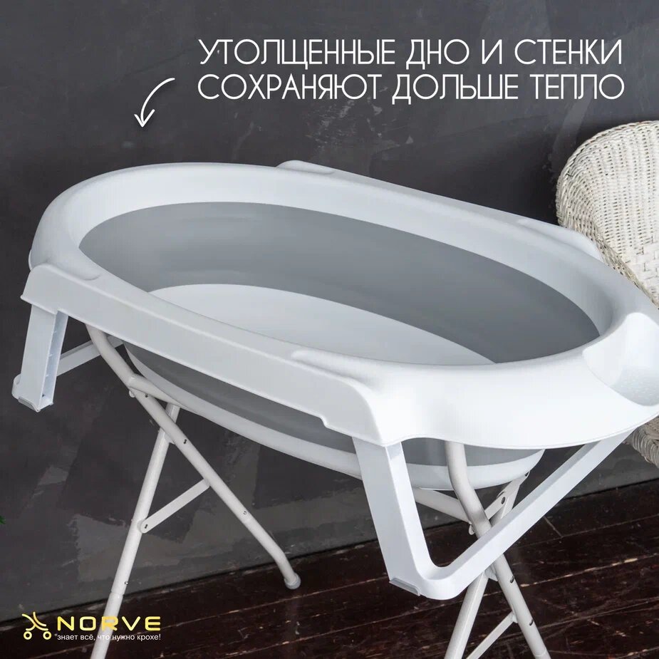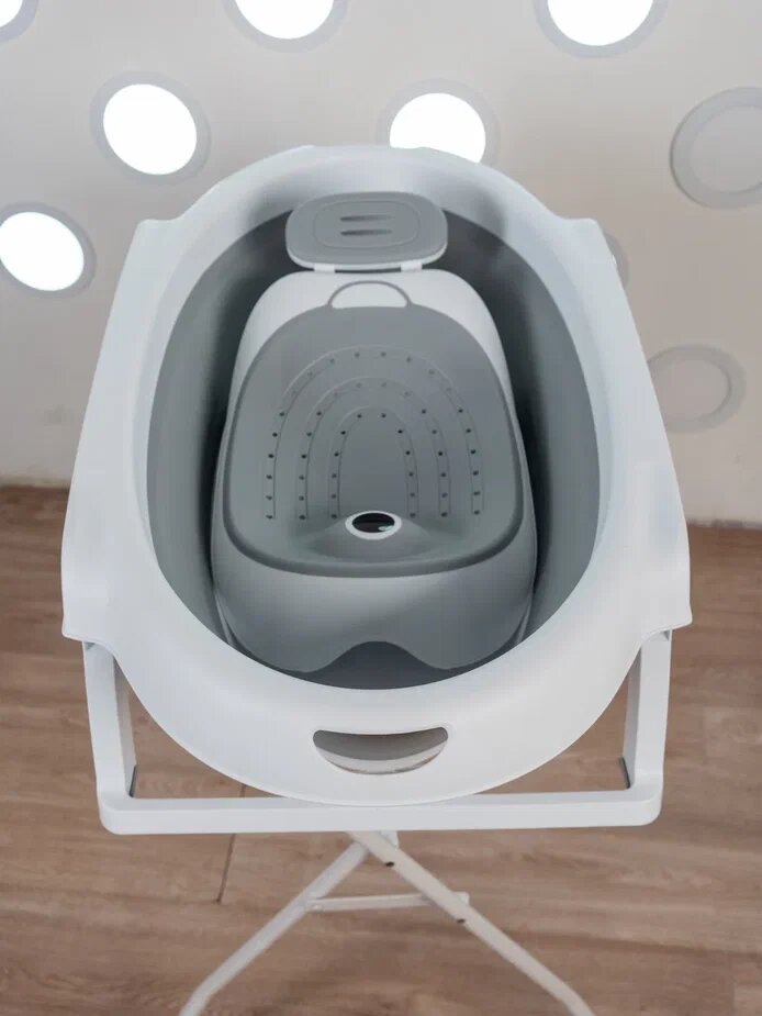 Ванночка для новорожденных и малышей складная с горкой, подставкой и сливным шлангом, серая интересное:
