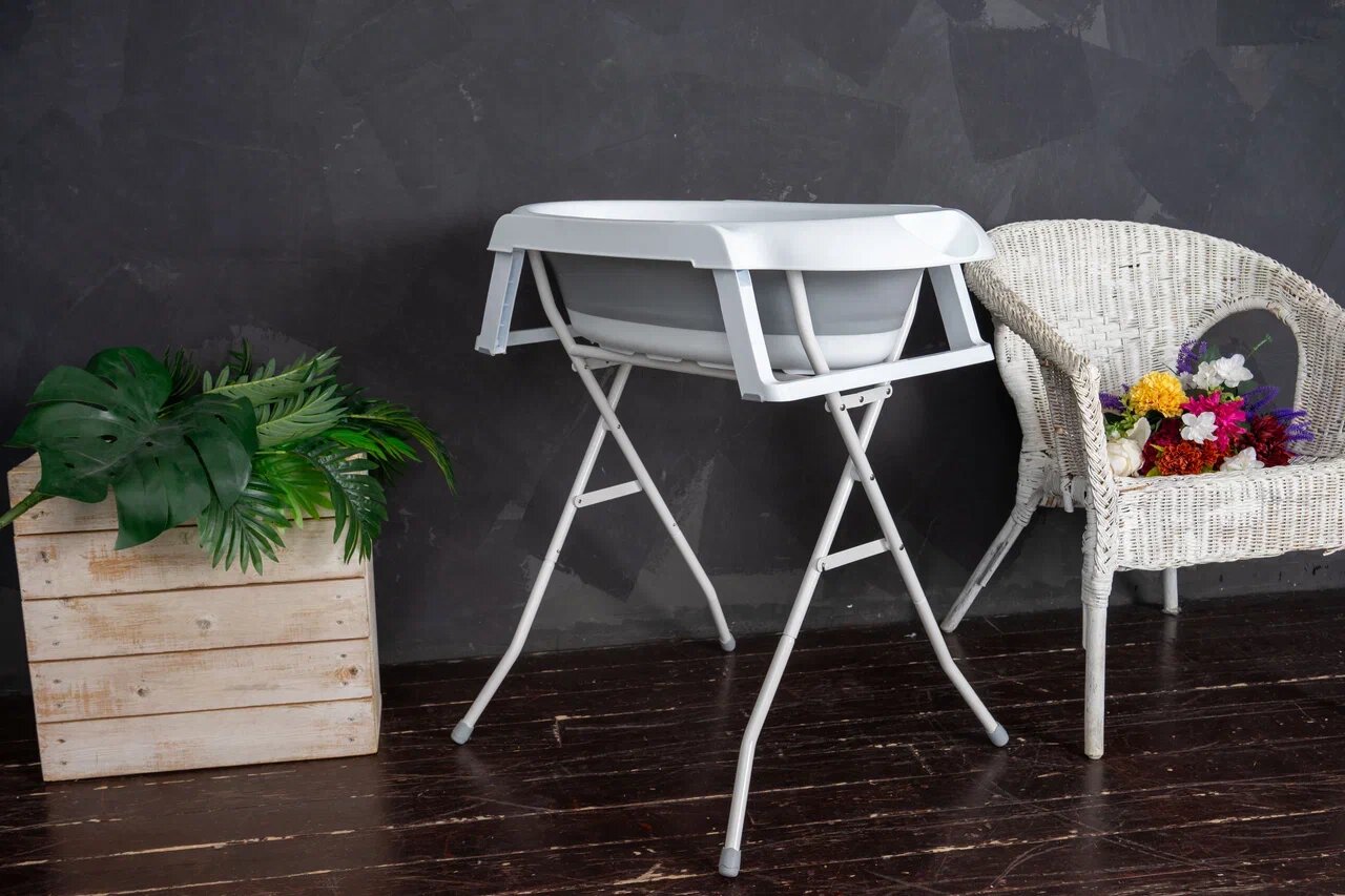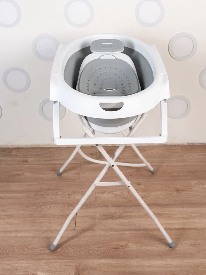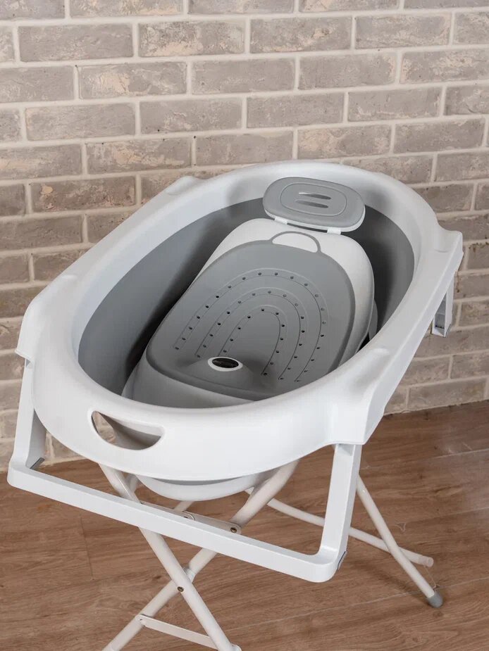 Купить Ванночка для новорожденных и малышей складная с горкой, подставкой и сливным шлангом, серая