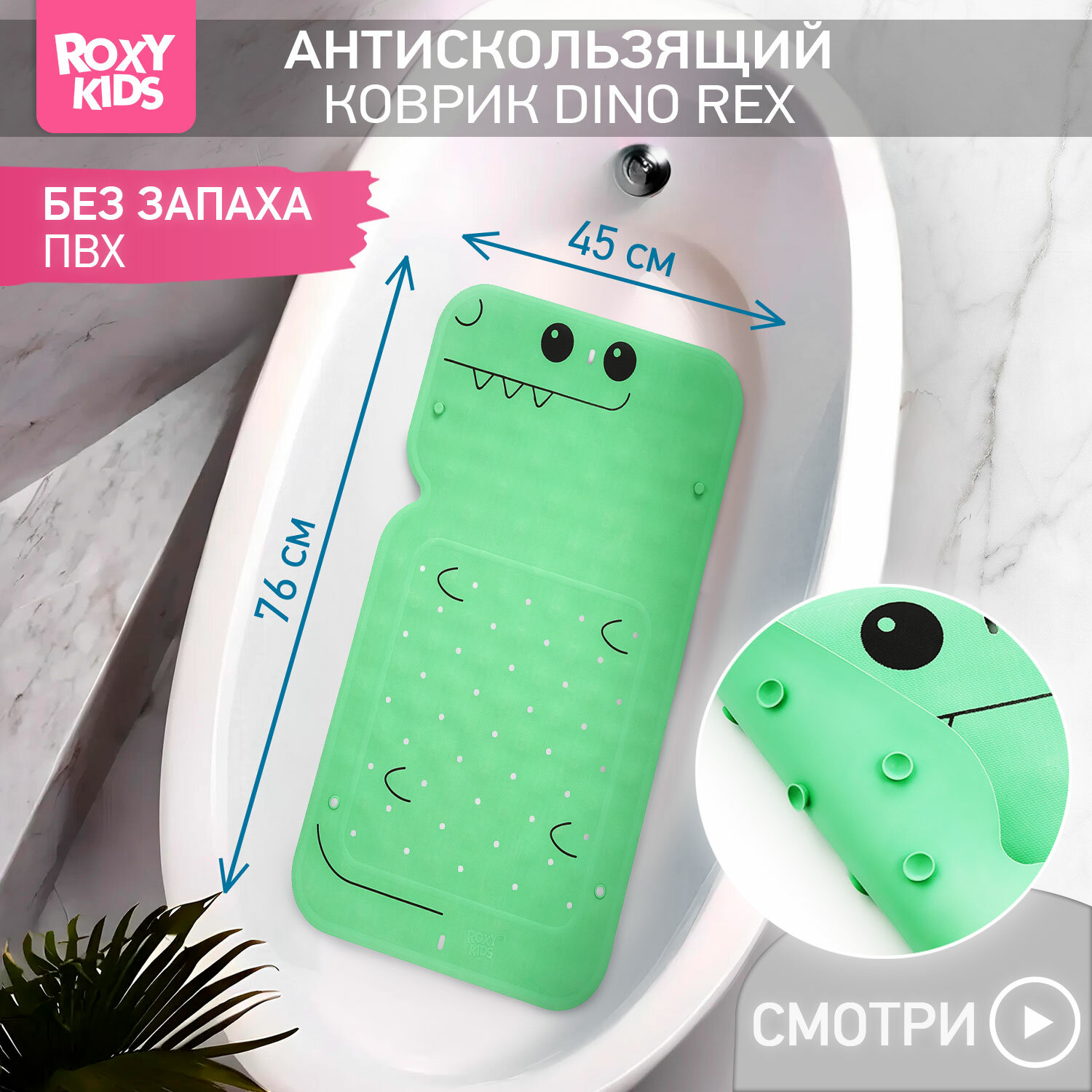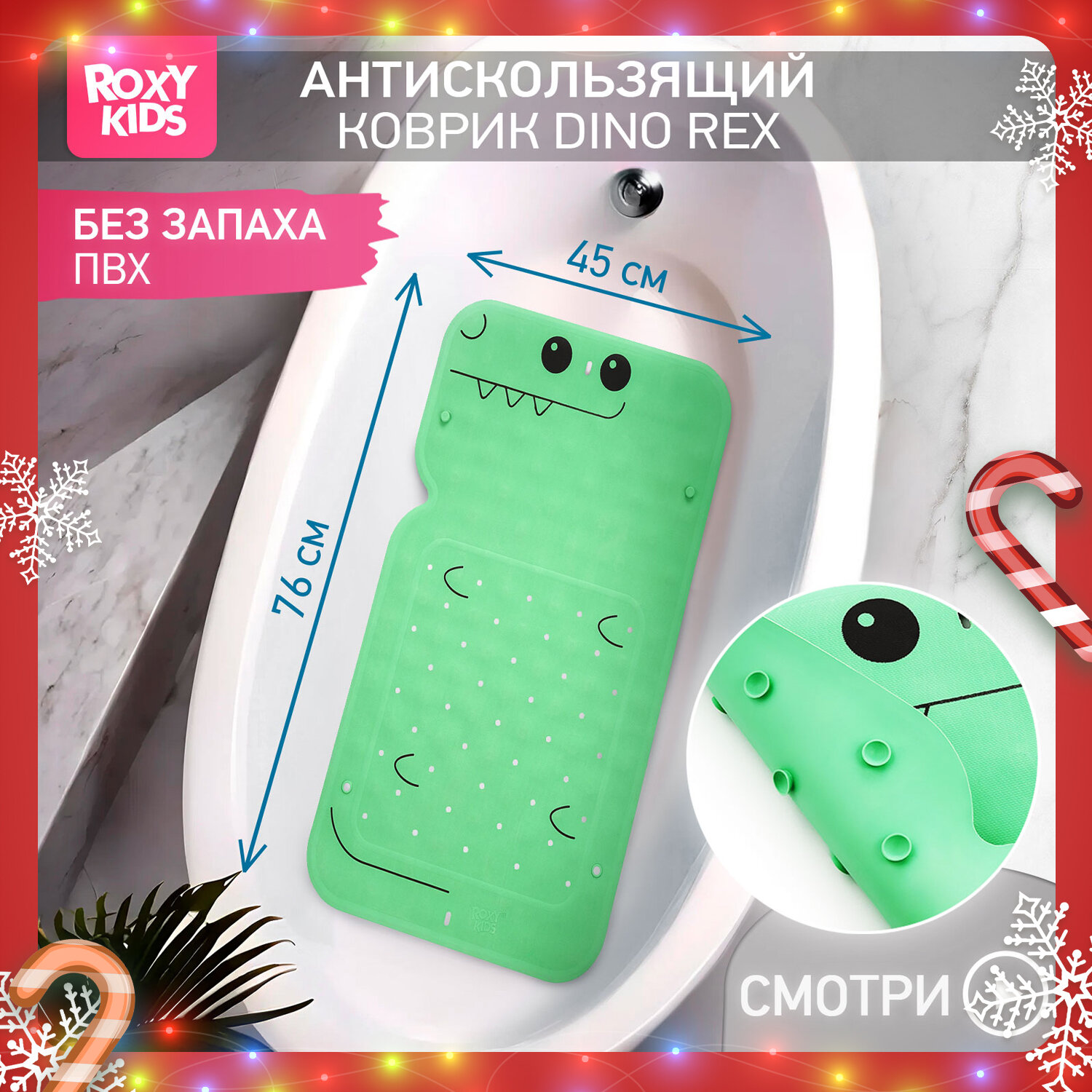 Антискользящий коврик резиновый для ванной "Дино" ROXY-KIDS 45х76 см цвет зеленый интересное: