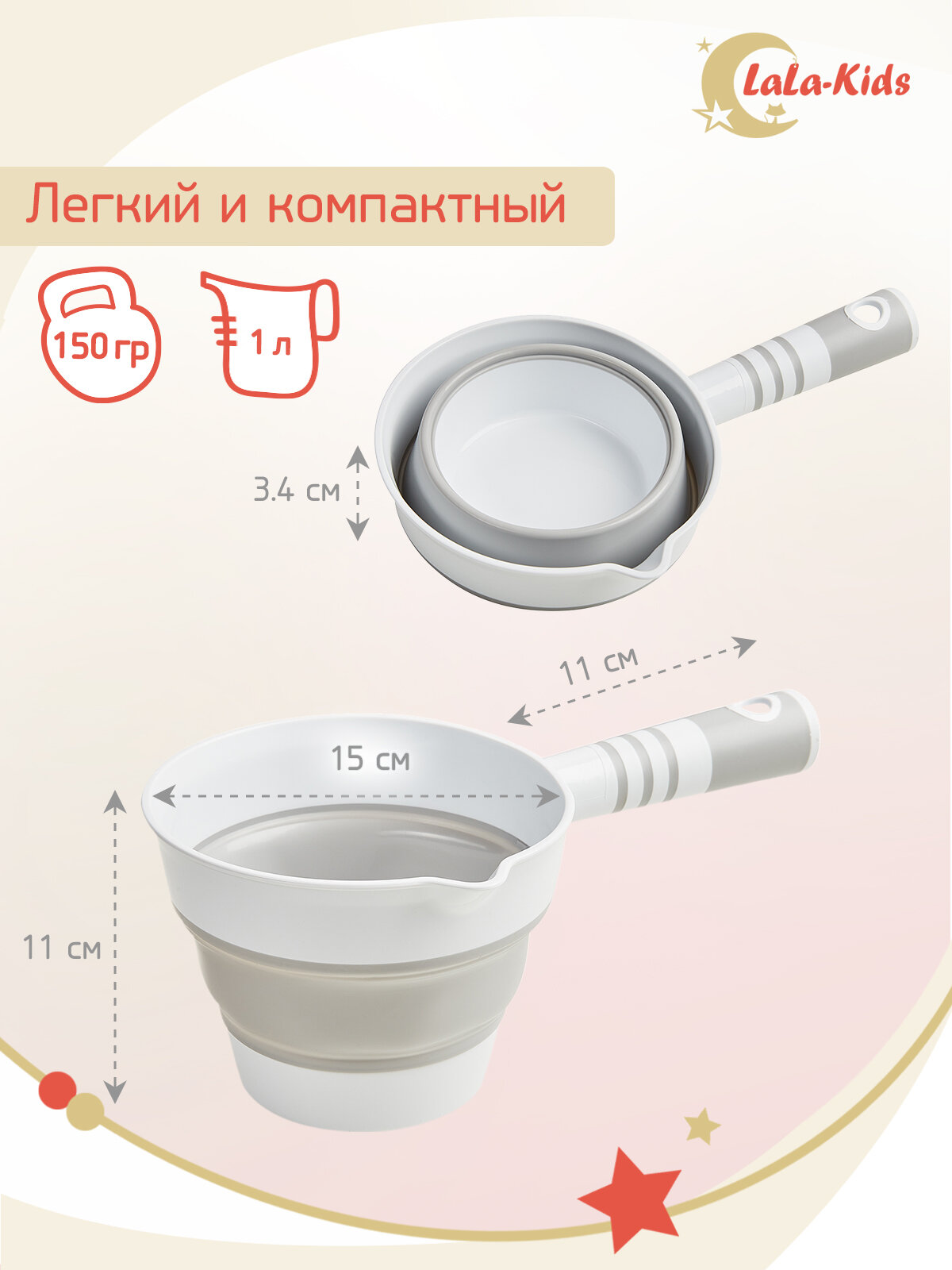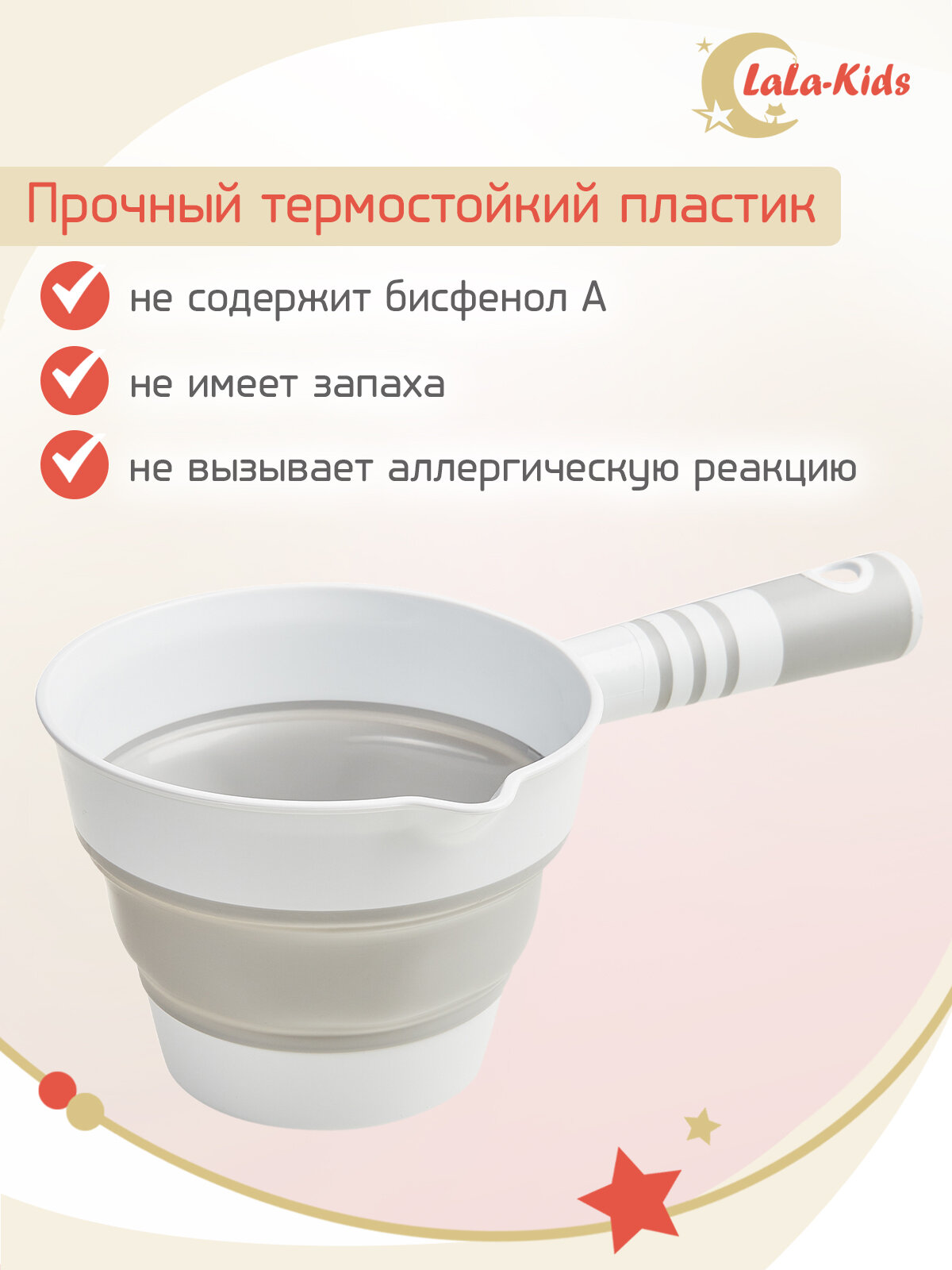 Ковшик для купания детский складной LaLa-Kids 1 литр, цвет серый интересное: