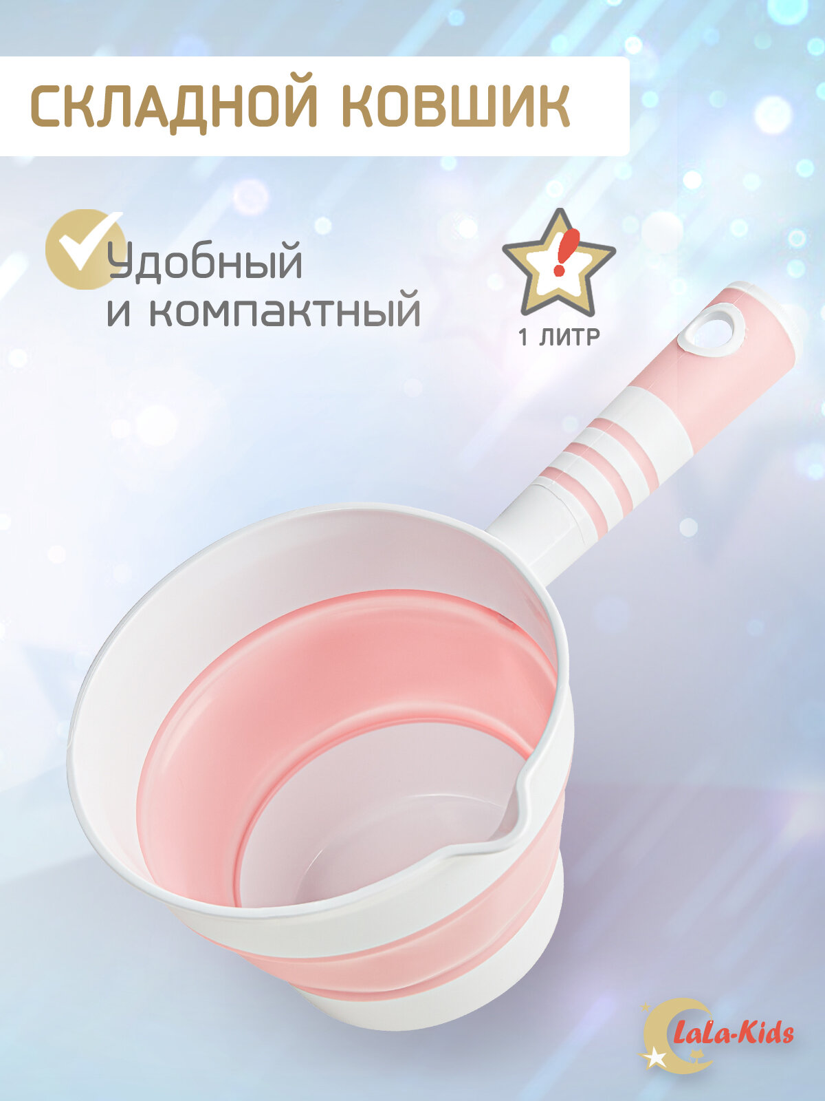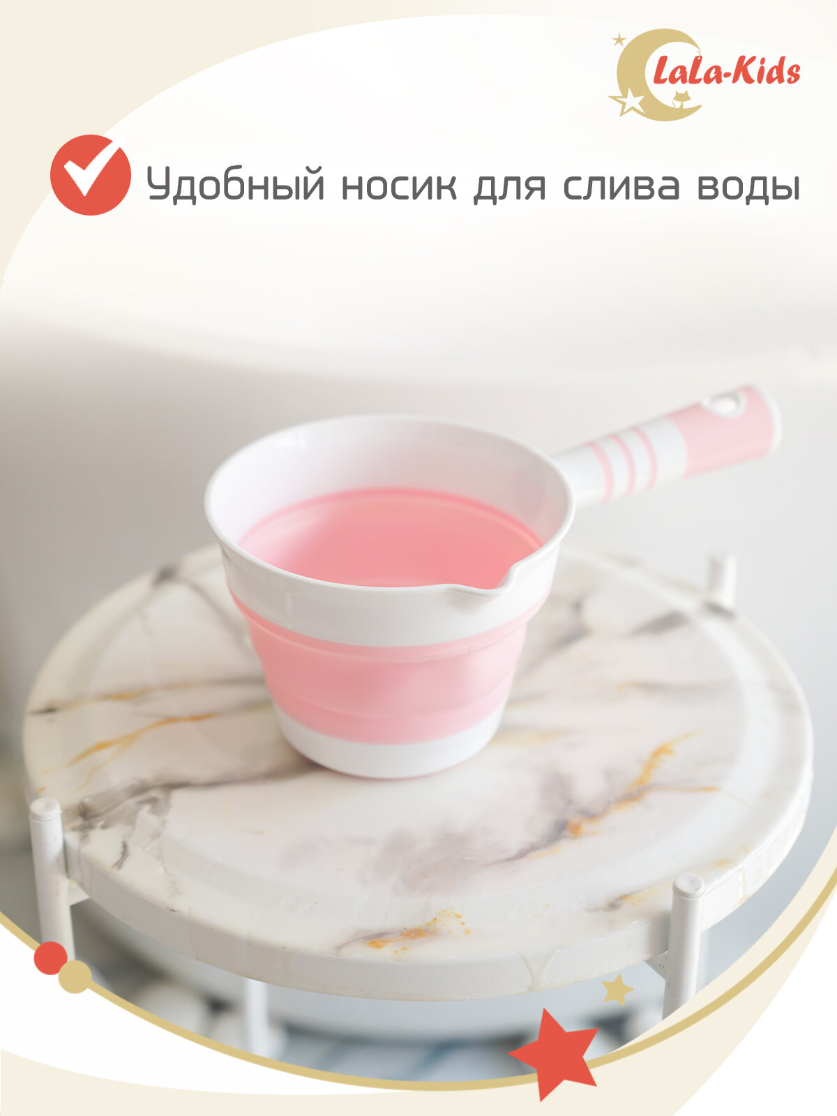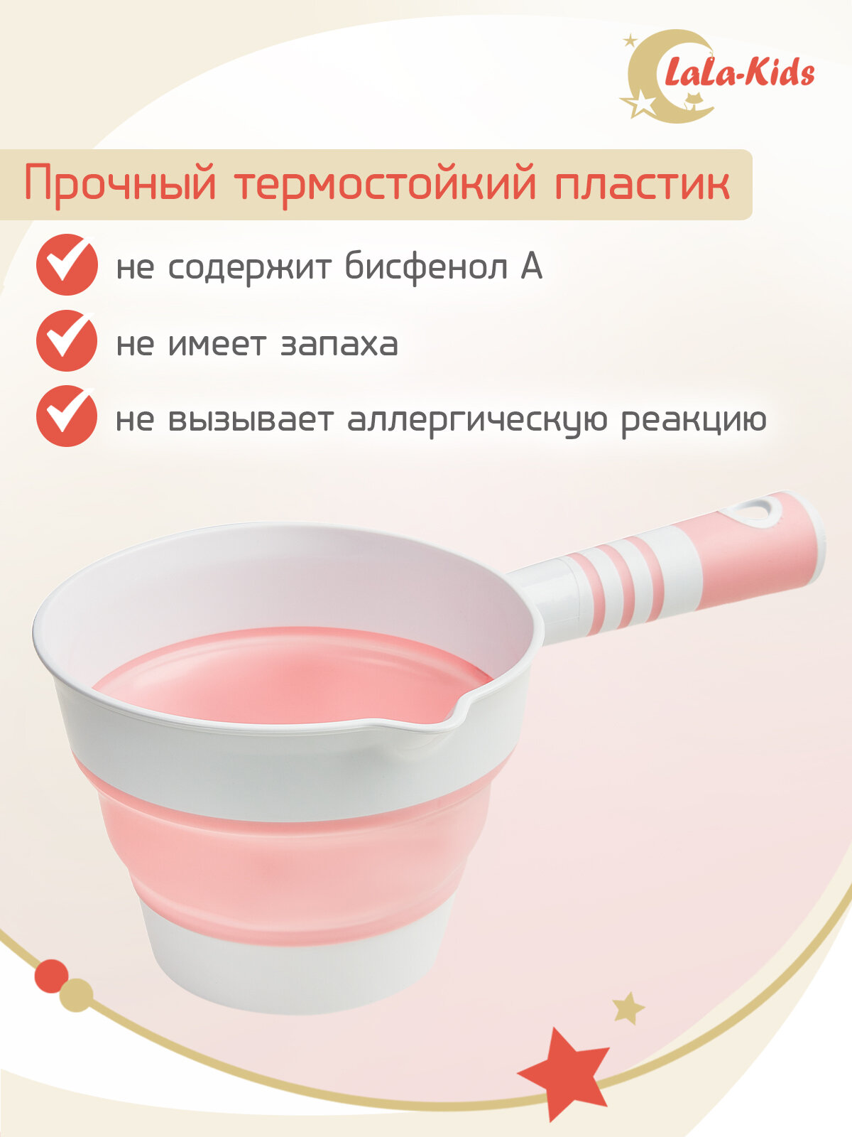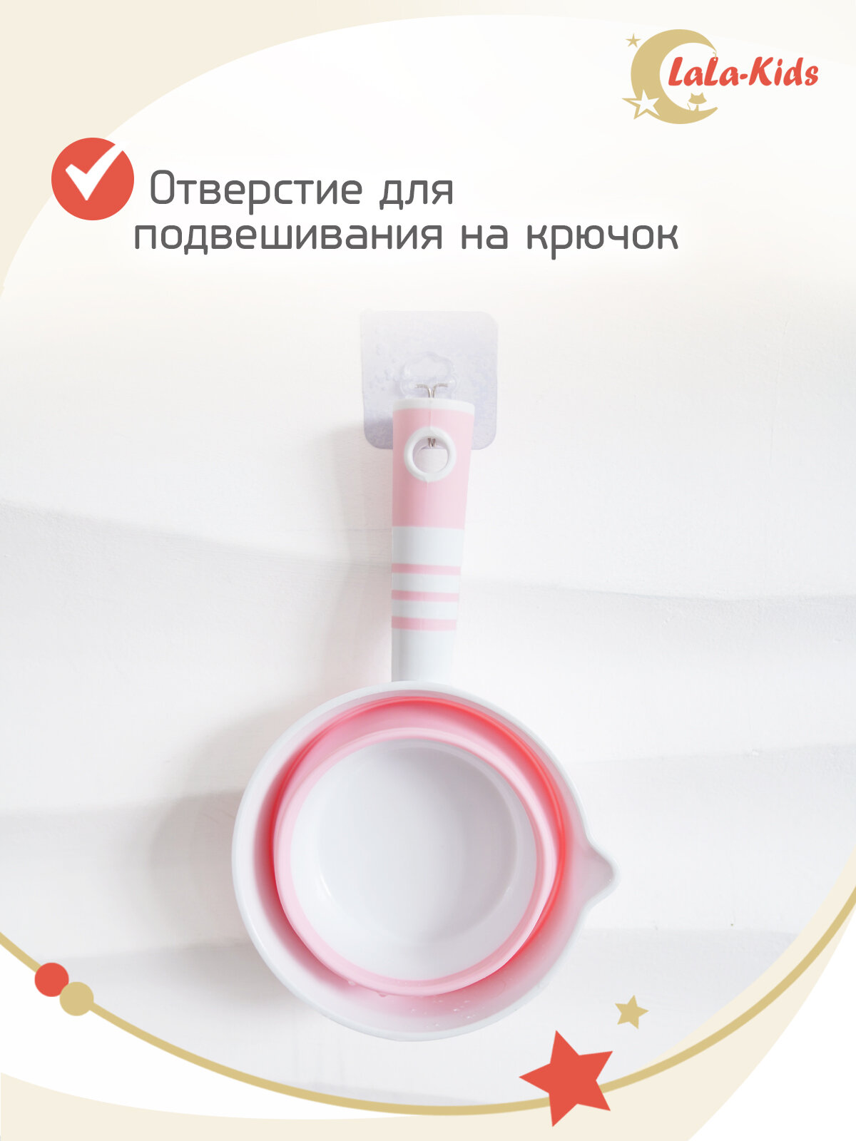 Ковшик для купания детский складной LaLa-Kids 1 литр, цвет розовый интересное: