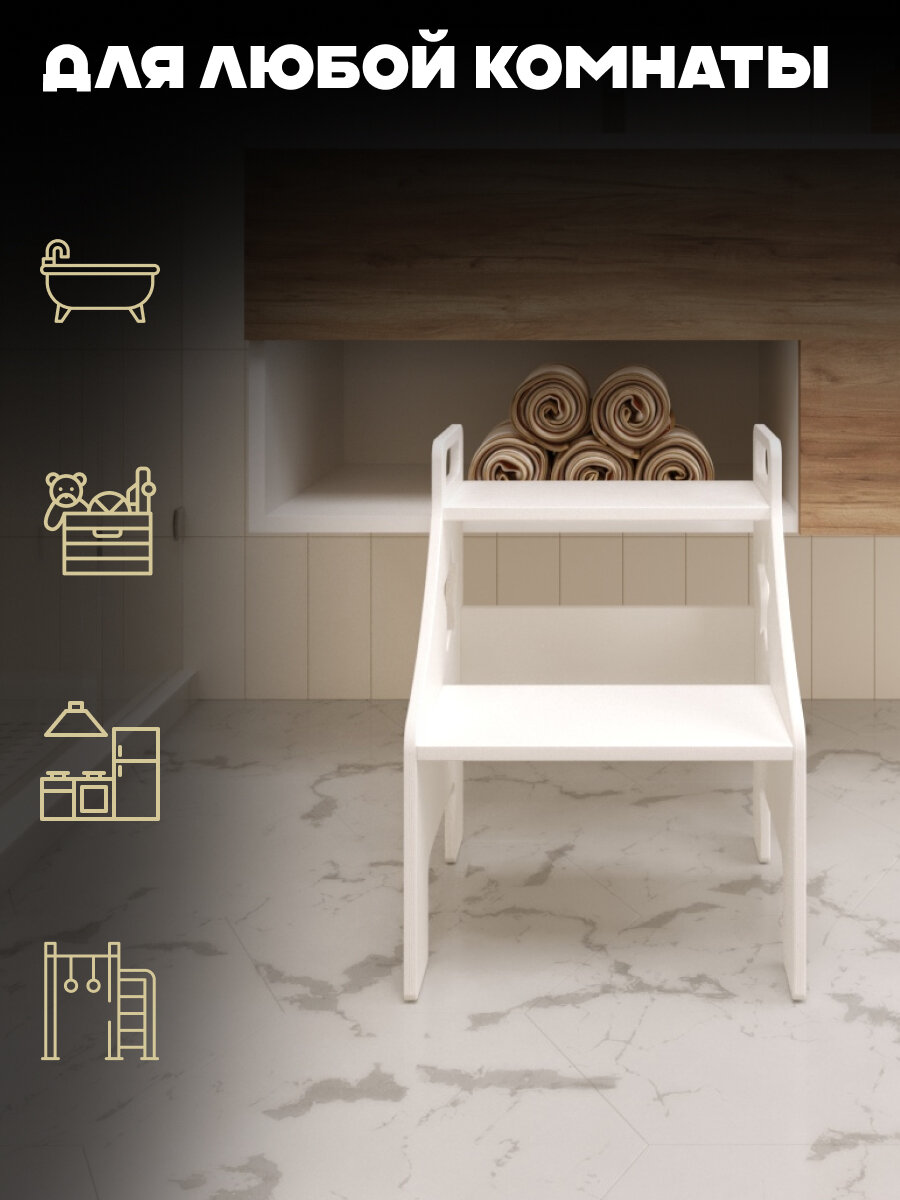 Детская стремянка "СТУПЕНЬКА" от "Pappado", цвет белый, 31х32х36 см, нагрузка до 70 кг