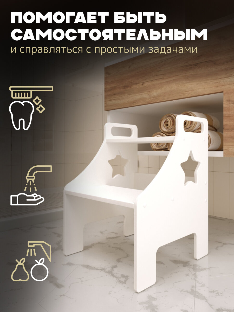 СохранитьДетская стремянка "ЗВЁЗДОЧКА" от "Pappado", с ручками, цвет белый, 38х38х50 см, нагрузка до 70 кг интересное: