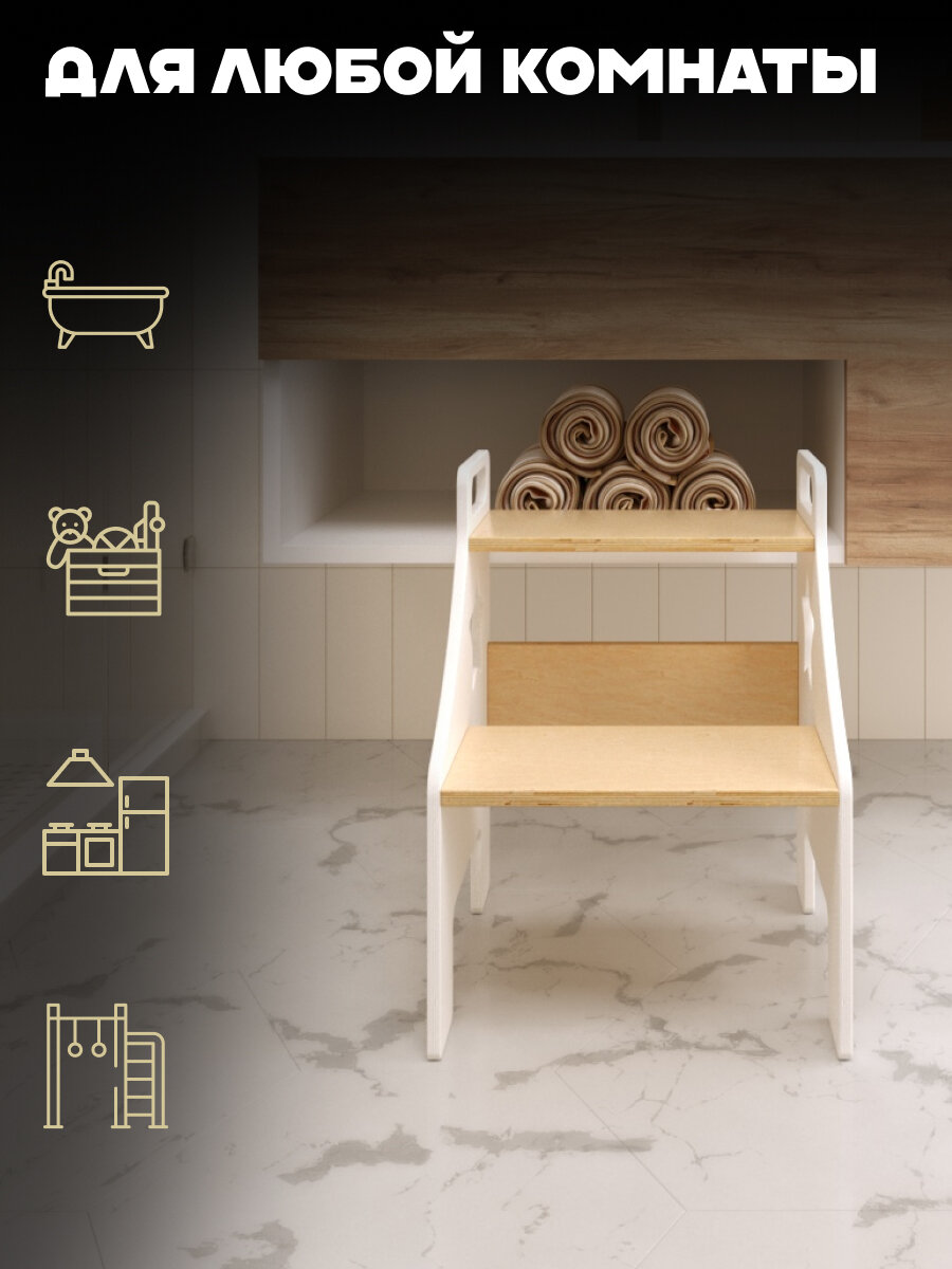 Детская стремянка "СТУПЕНЬКА" от "Pappado", шлифованная, 31х32х36 см, нагрузка до 70 кг