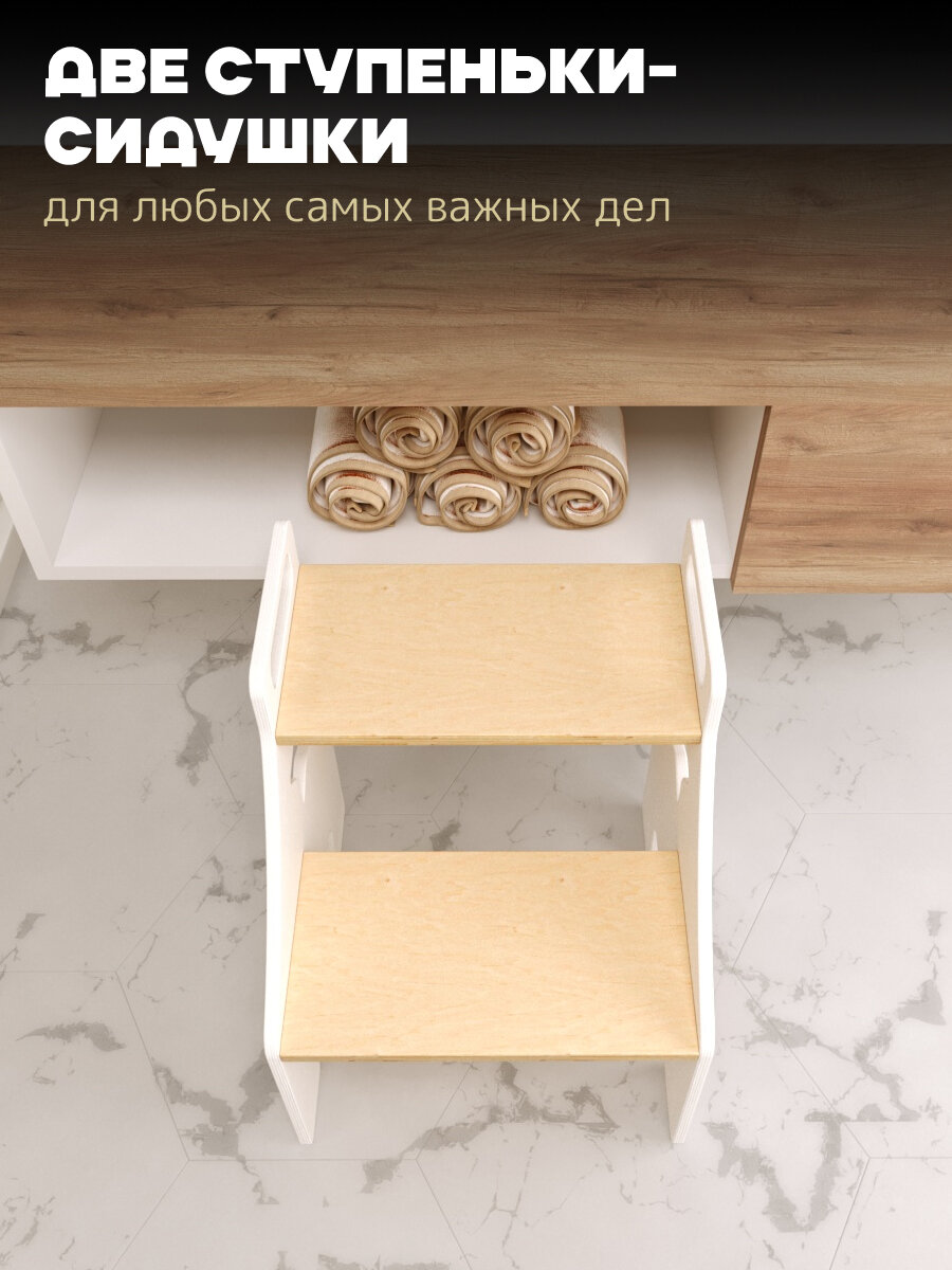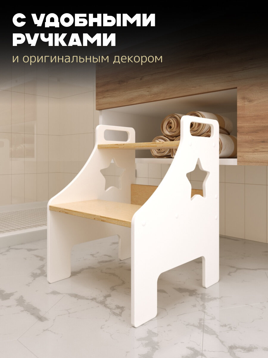СохранитьДетская стремянка "ЗВЁЗДОЧКА" от "Pappado", с ручками, цвет белый + лак, 38х38х50 см, нагрузка до 70 кг интересное: