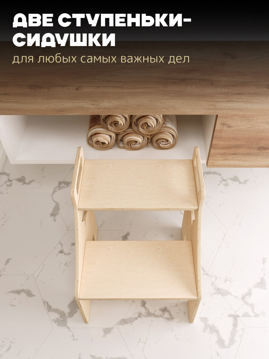 Детская стремянка "СТУПЕНЬКА" от "Pappado", шлифованная, 31х32х36 см, нагрузка до 70 кг
