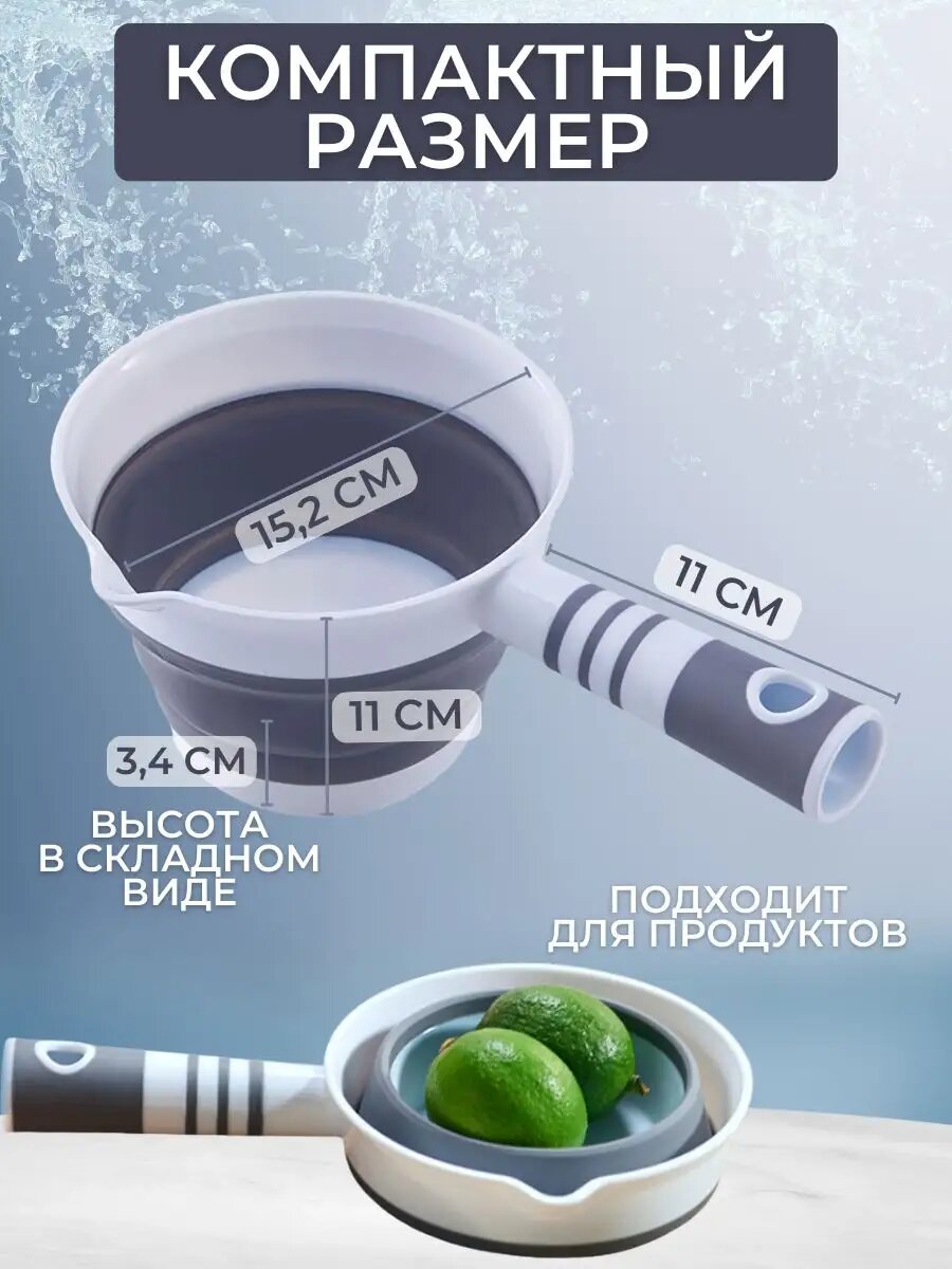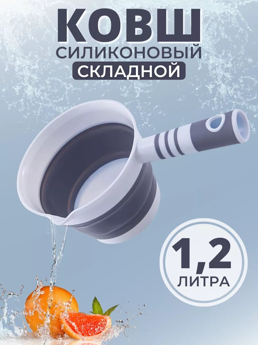 Ковш кухонный 1,2 л с носиком складной силиконовый для купания интересное: