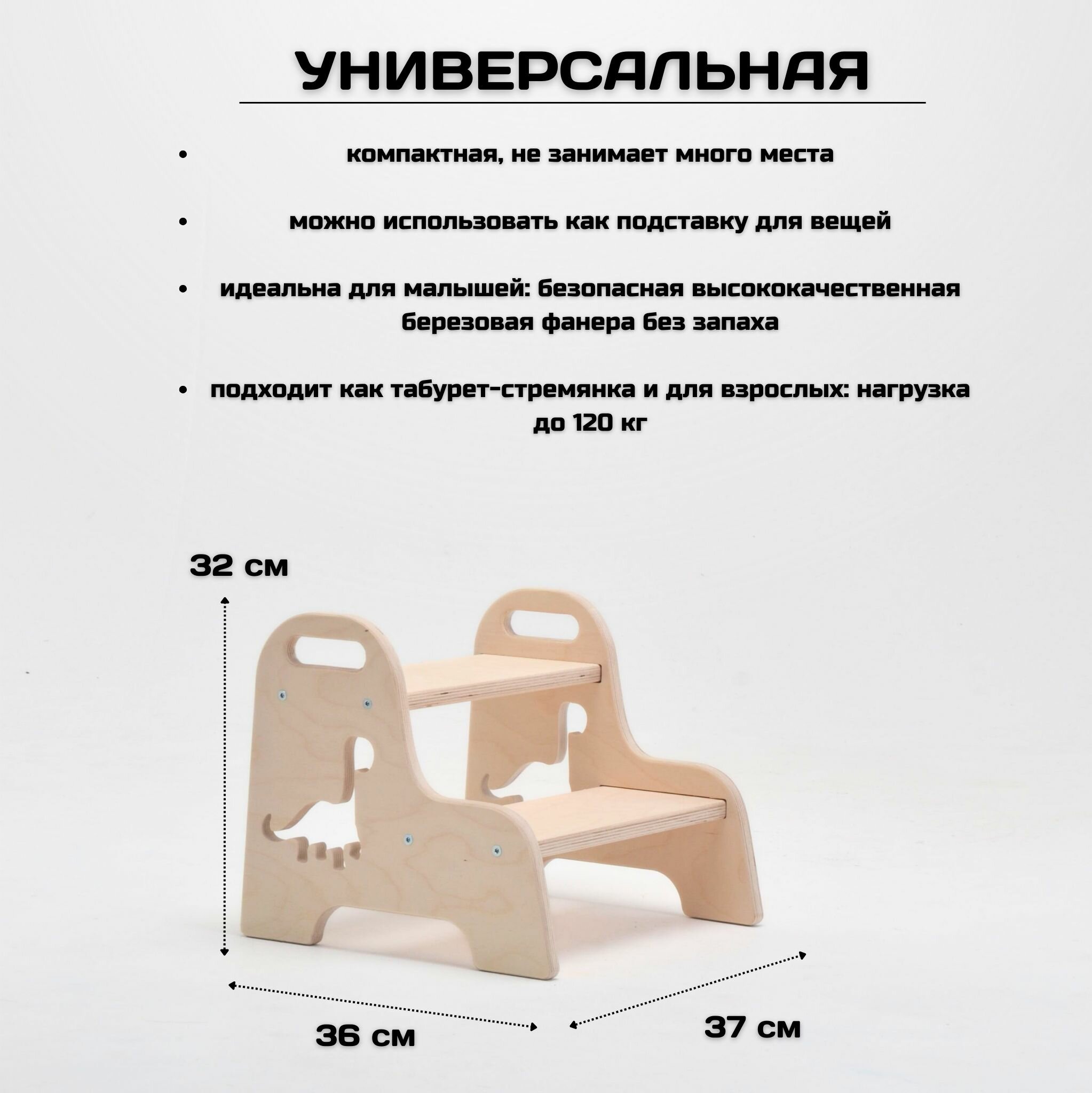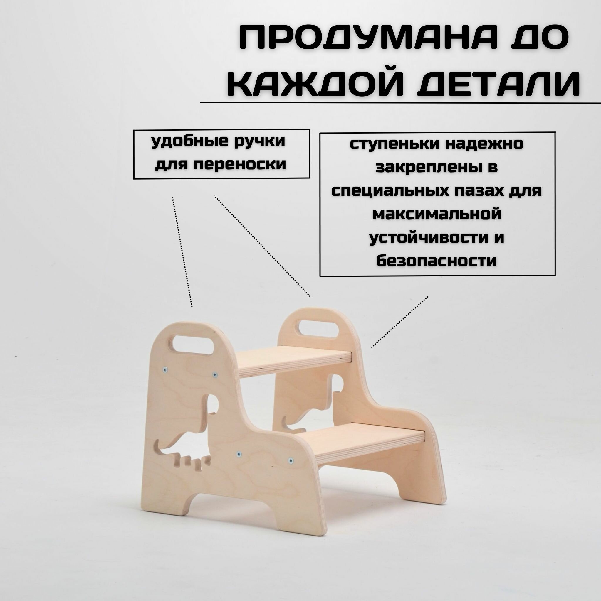 Ниже Вы можете прочитать отзывы на Детская ступенька деревянная табурет-стремянка, без шлифовки с динозавриком, ознакомится с подробными характеристиками, посмотреть интересные обзоры и фотографии на Детская ступенька деревянная табурет-стремянка, без шлифовки с динозавриком.
