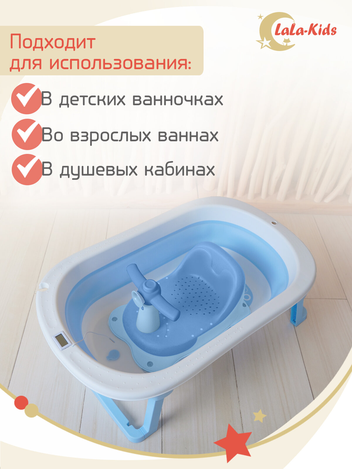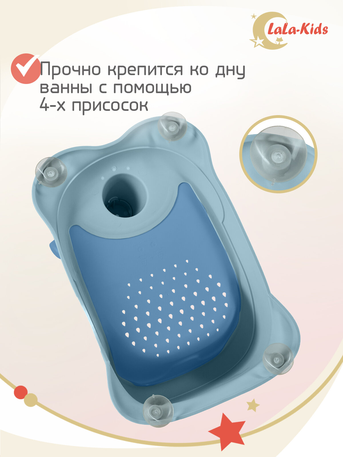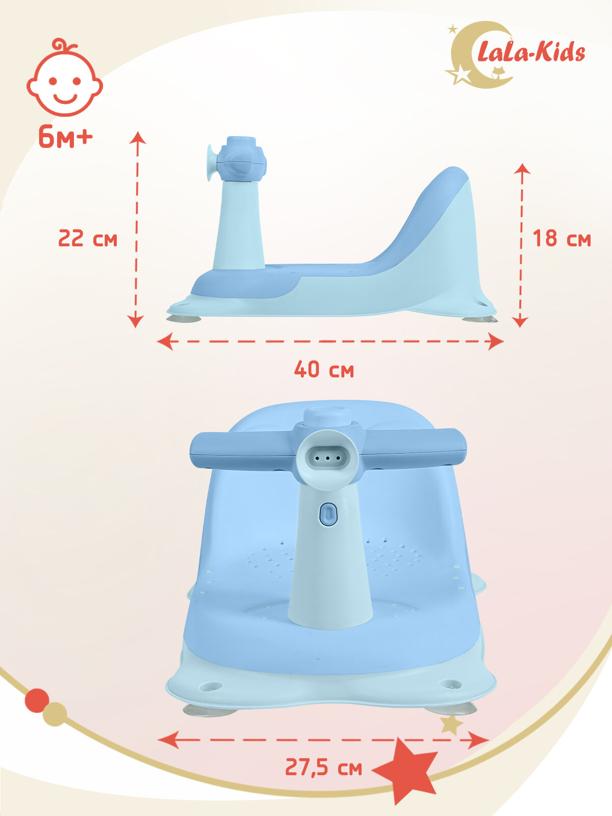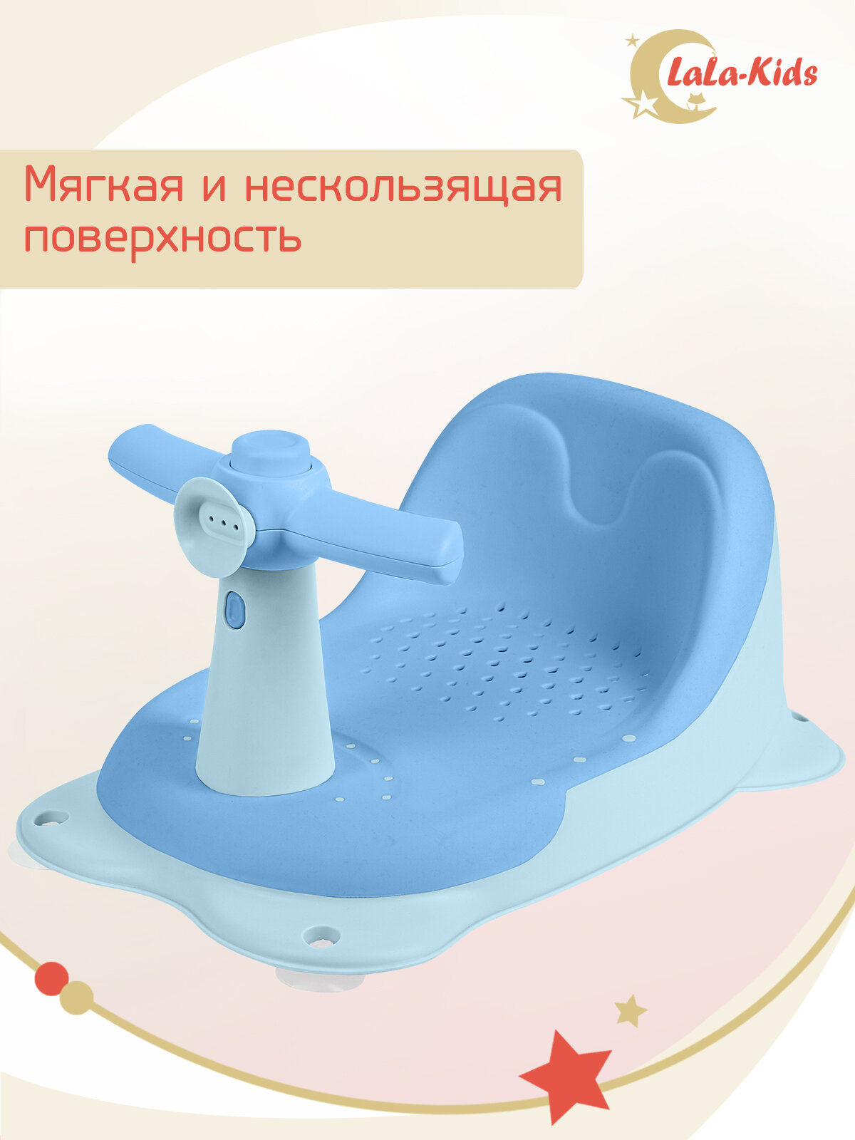 Cиденье LaLa-Kids для купания с мягким ковриком Скутер, голубой интересное: