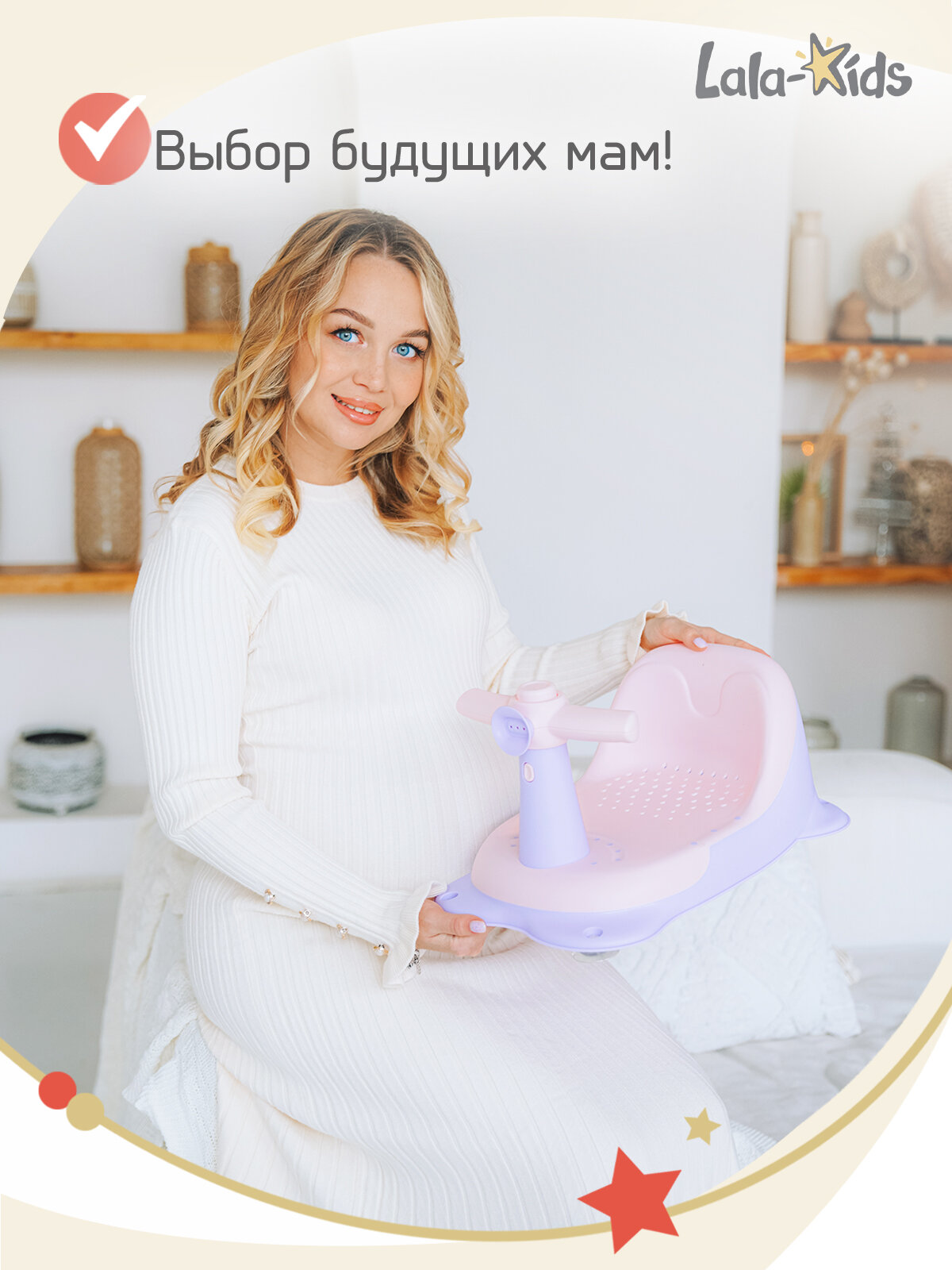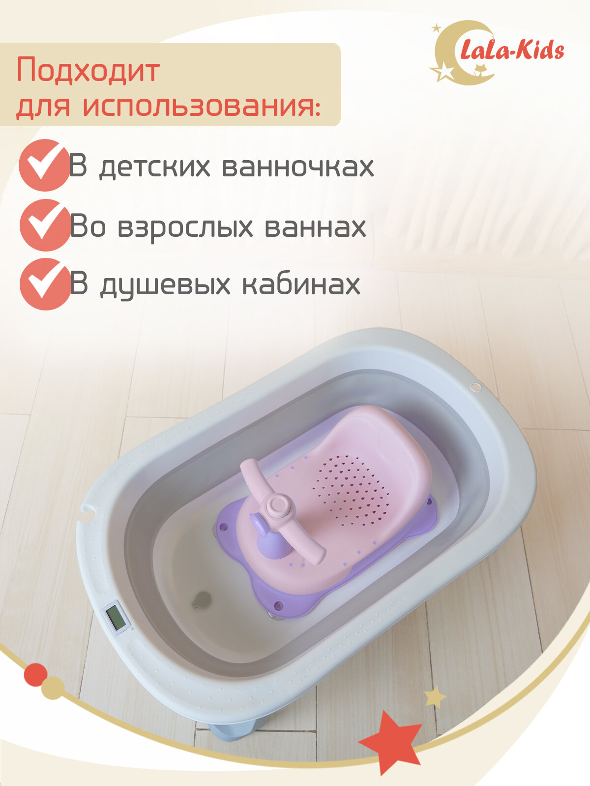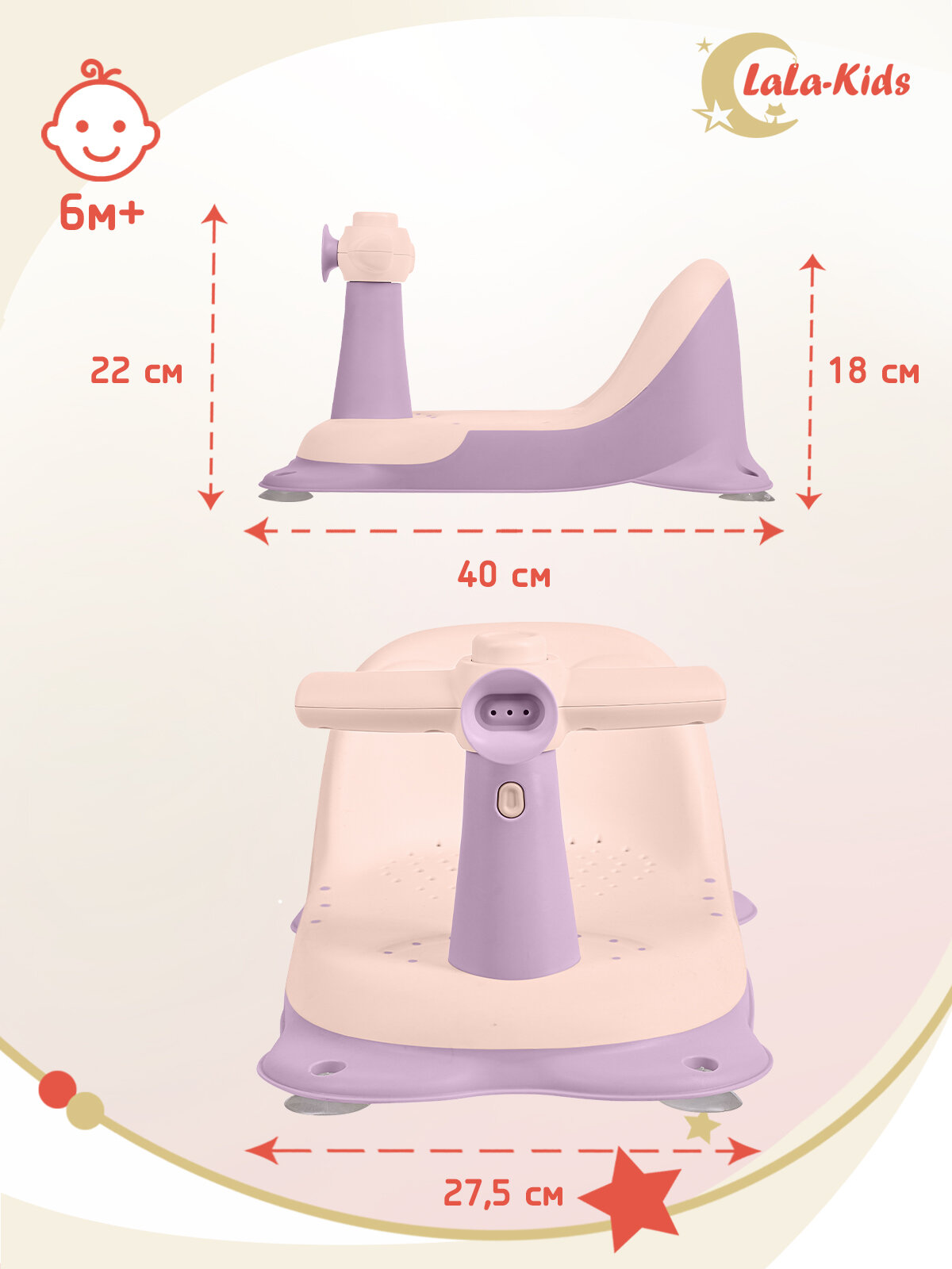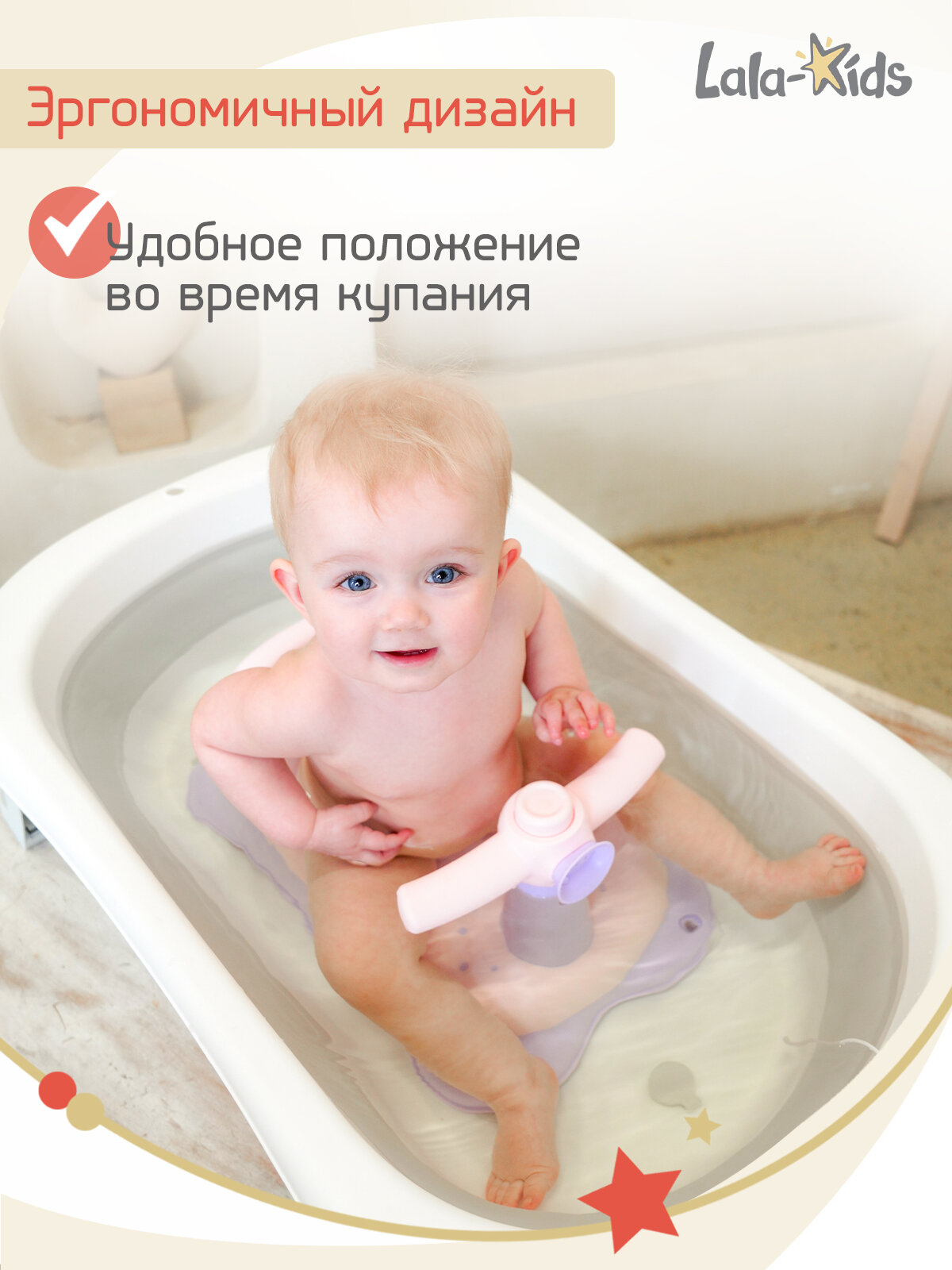 Cиденье LaLa-Kids для купания с мягким ковриком Скутер, розовый интересное: