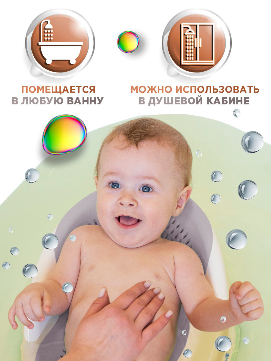 Горка для купания новорожденных Drops, Babycare, серый/сиреневый