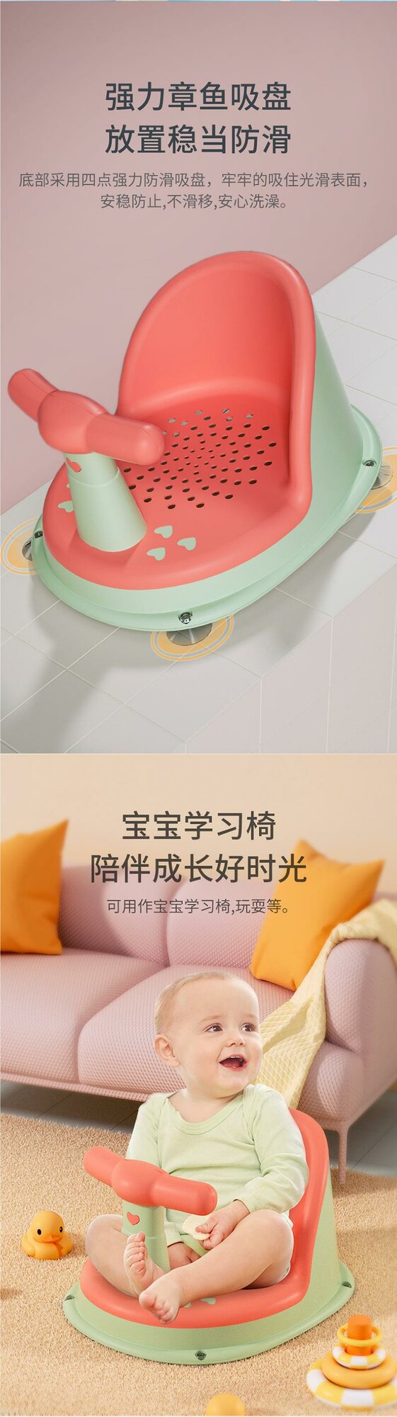 Детское кресло для купания Baby Magpies Town "Артефакт", PP+TPE, нескользящее, розово-зелёное интересное: