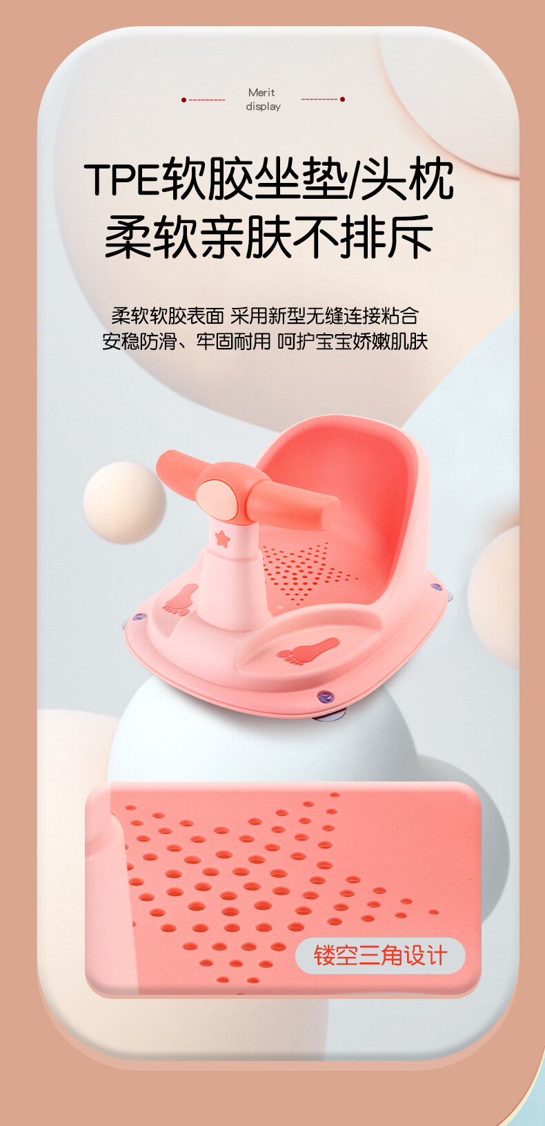Стульчик для купания Baby Magpie, нескользящий, PP+TPE, розовый