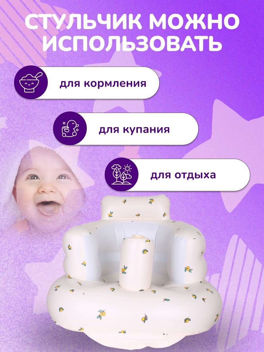 Детский стульчик надувной для купания кресло для дома и отдыха на природе Maksi-junior Абрикосы бежевое интересное: