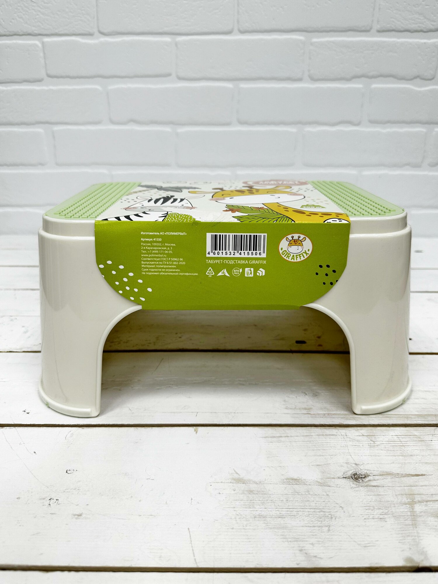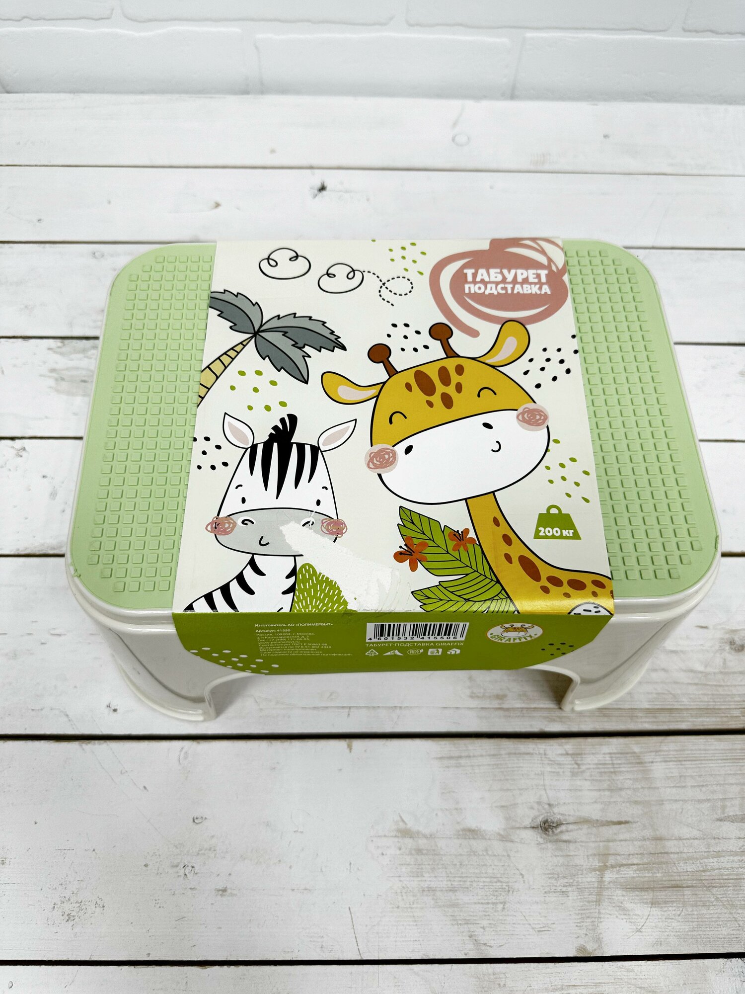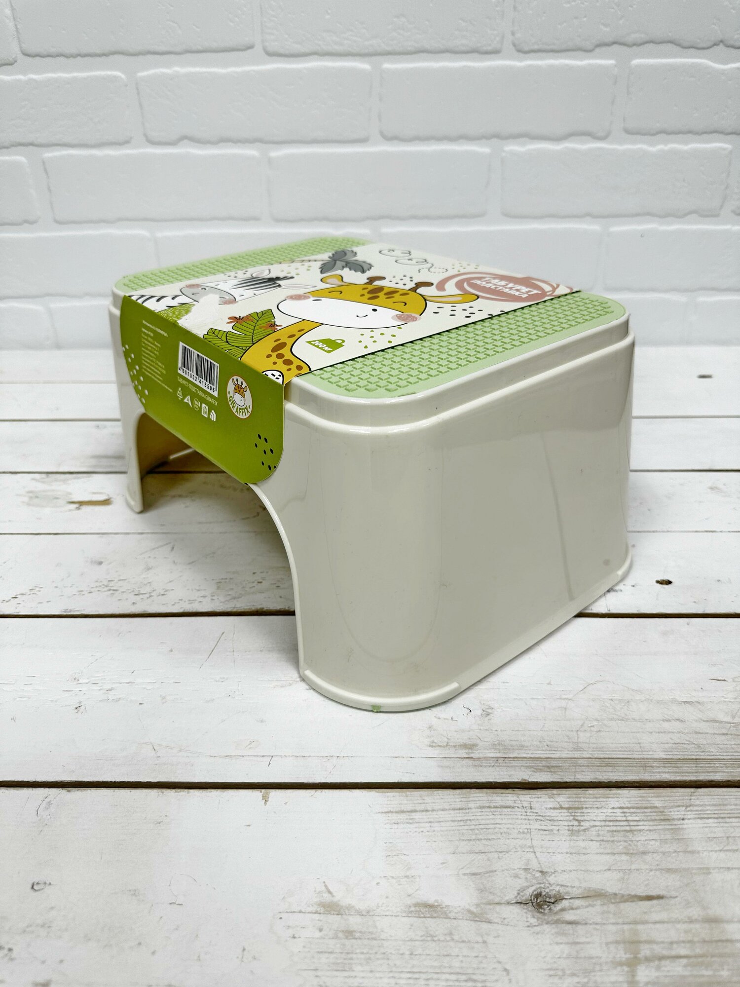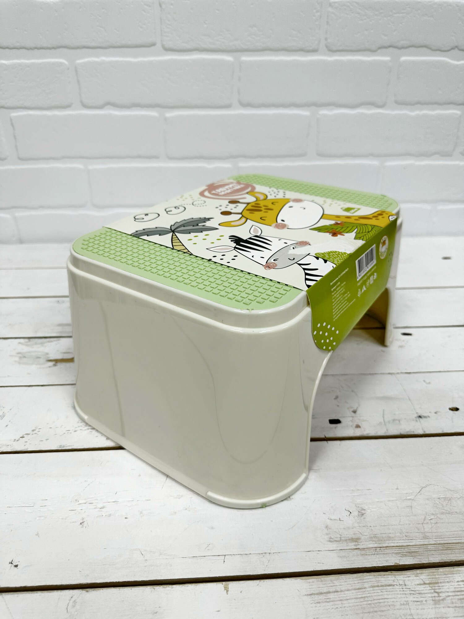 Табурет-подставка детский Полимербыт Giraffix, размер: 33.5x25.5x16см, цвет: белый, зеленый интересное: