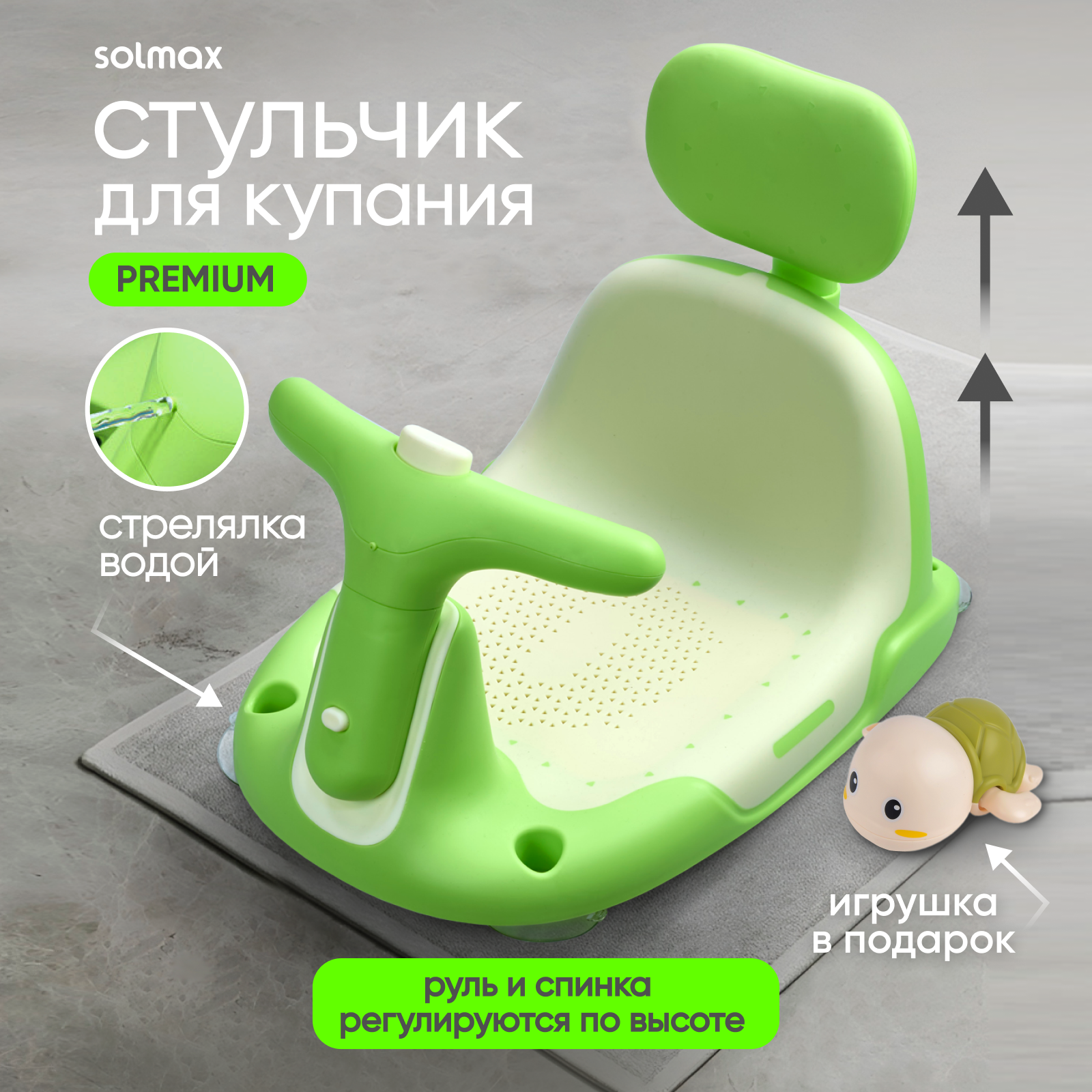 Ниже Вы можете прочитать отзывы на Стульчик для купания детский на присосках для ванны Solmax&Kids с заводной игрушкой, ознакомится с подробными характеристиками, посмотреть интересные обзоры и фотографии на Стульчик для купания детский на присосках для ванны Solmax&Kids с заводной игрушкой.