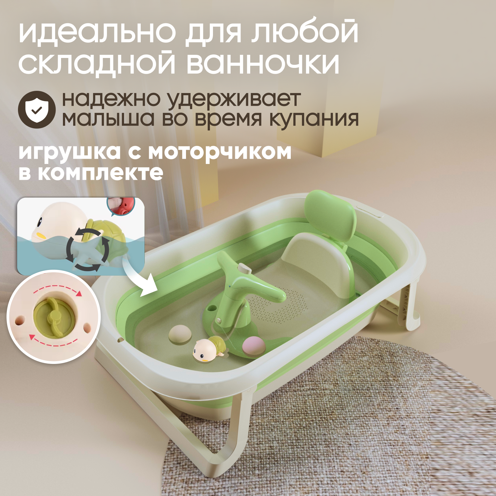 Стульчик для купания детский на присосках для ванны Solmax&Kids с заводной игрушкой интересное:
