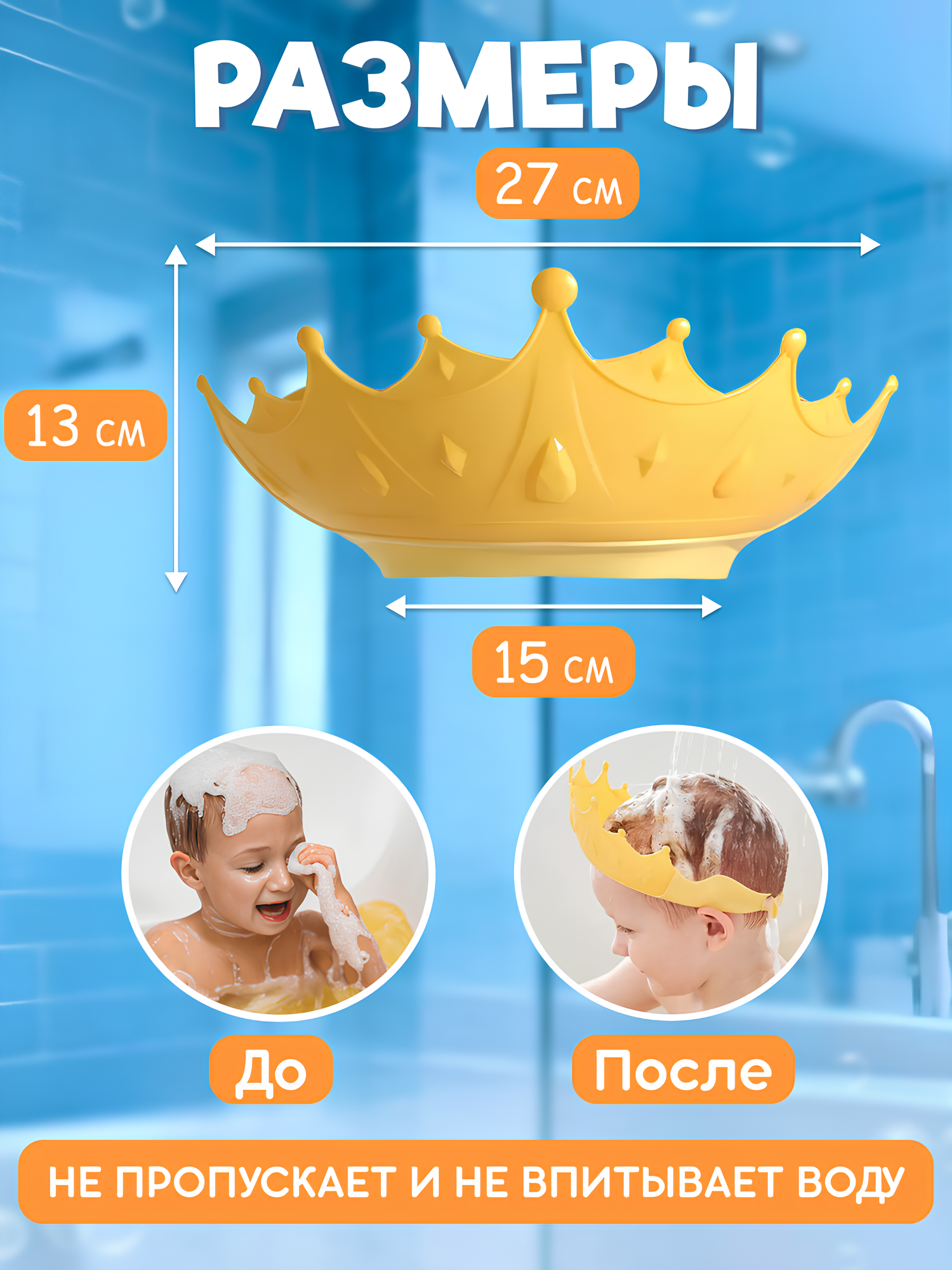 Шапочка козырек регулируемый детский защитный для купания мытья головы детей, малышей, младенцев Halsa