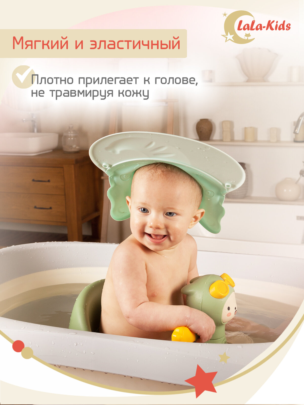 Козырек LaLa-Kids для мытья головы анатомический Слоненок зеленый интересное: