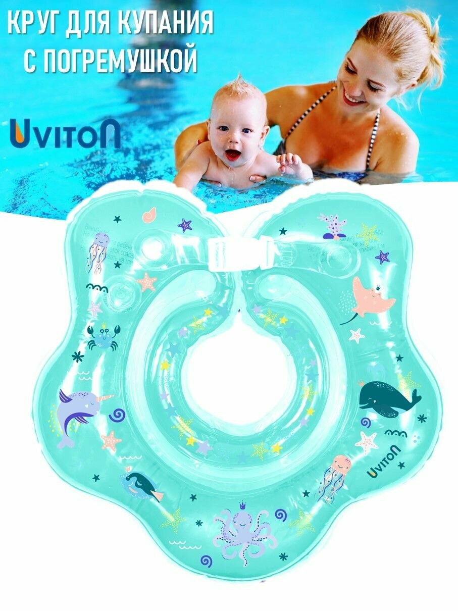 Круг на шею для купания новорожденных c погремушкой, ручками от Uviton 0+ интересное: