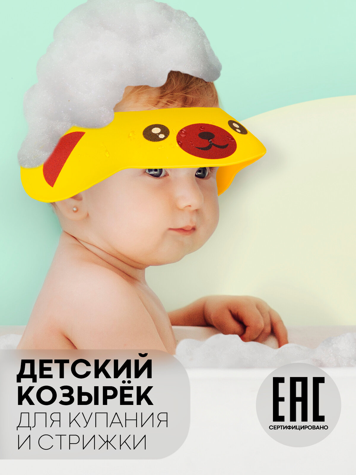 Козырек для купания малыша картофан с защитой от попадания шампуня в глазки, медвежонок интересное: