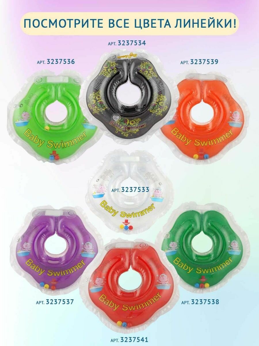 Круг для купания новорожденных на шею Baby Swimmer, вес от 3 до 12 кг интересное: