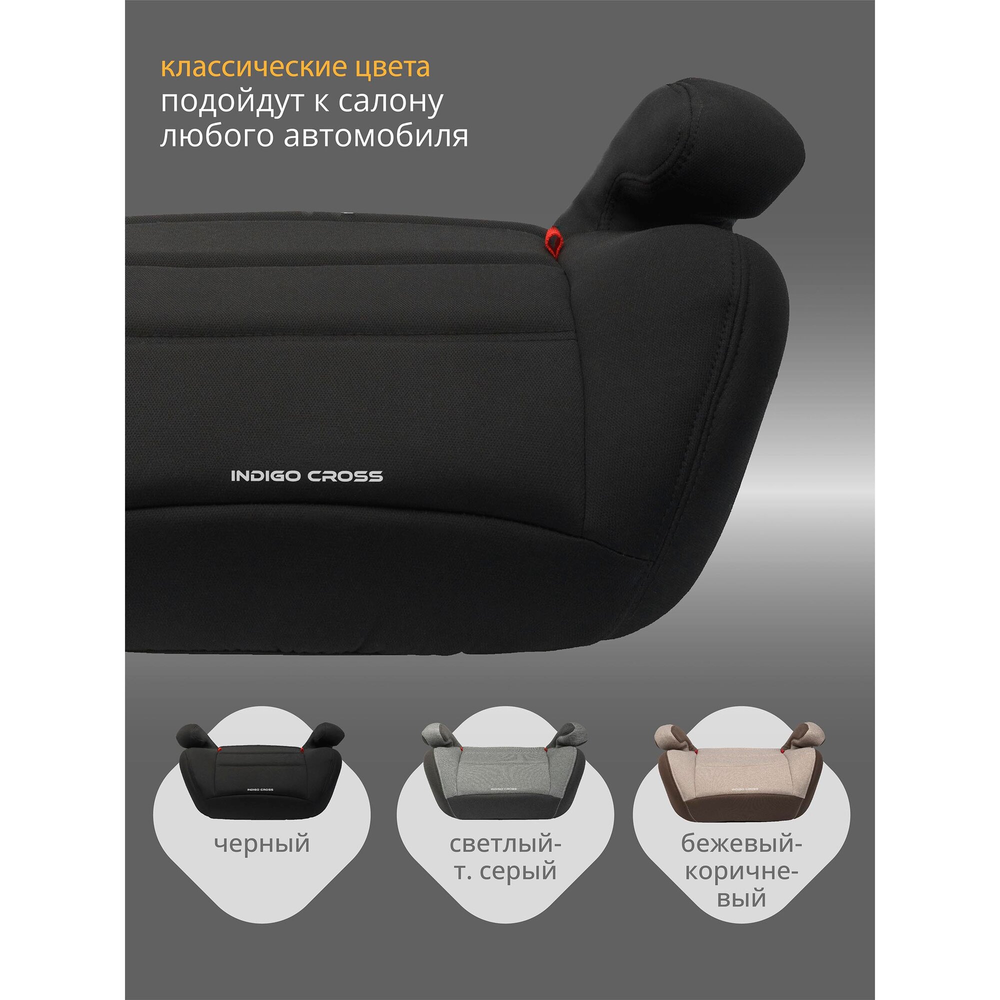 Бустер Indigo Cross, группа 3, от 22 до 36 кг, черный интересное:
