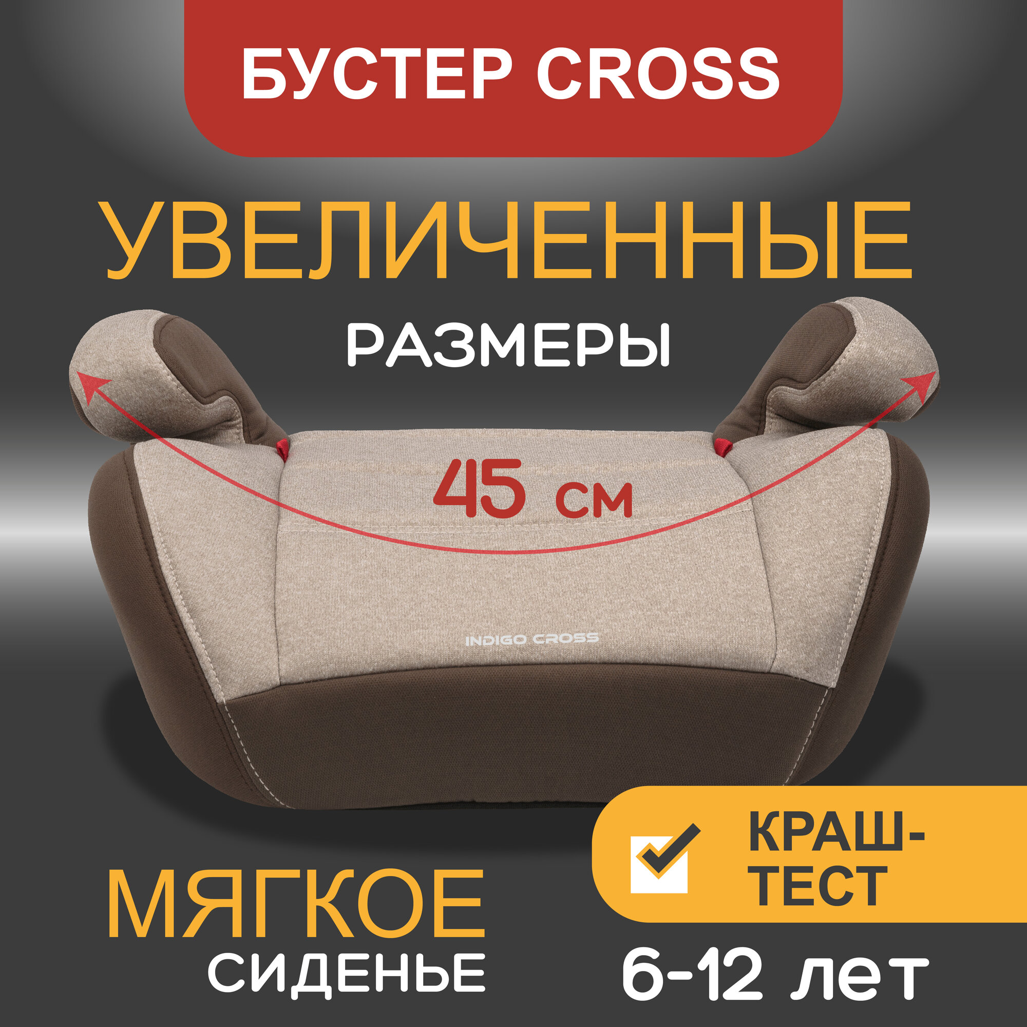 Бустер Indigo Cross, группа 3, от 22 до 36 кг, бежевый/коричневый интересное:
