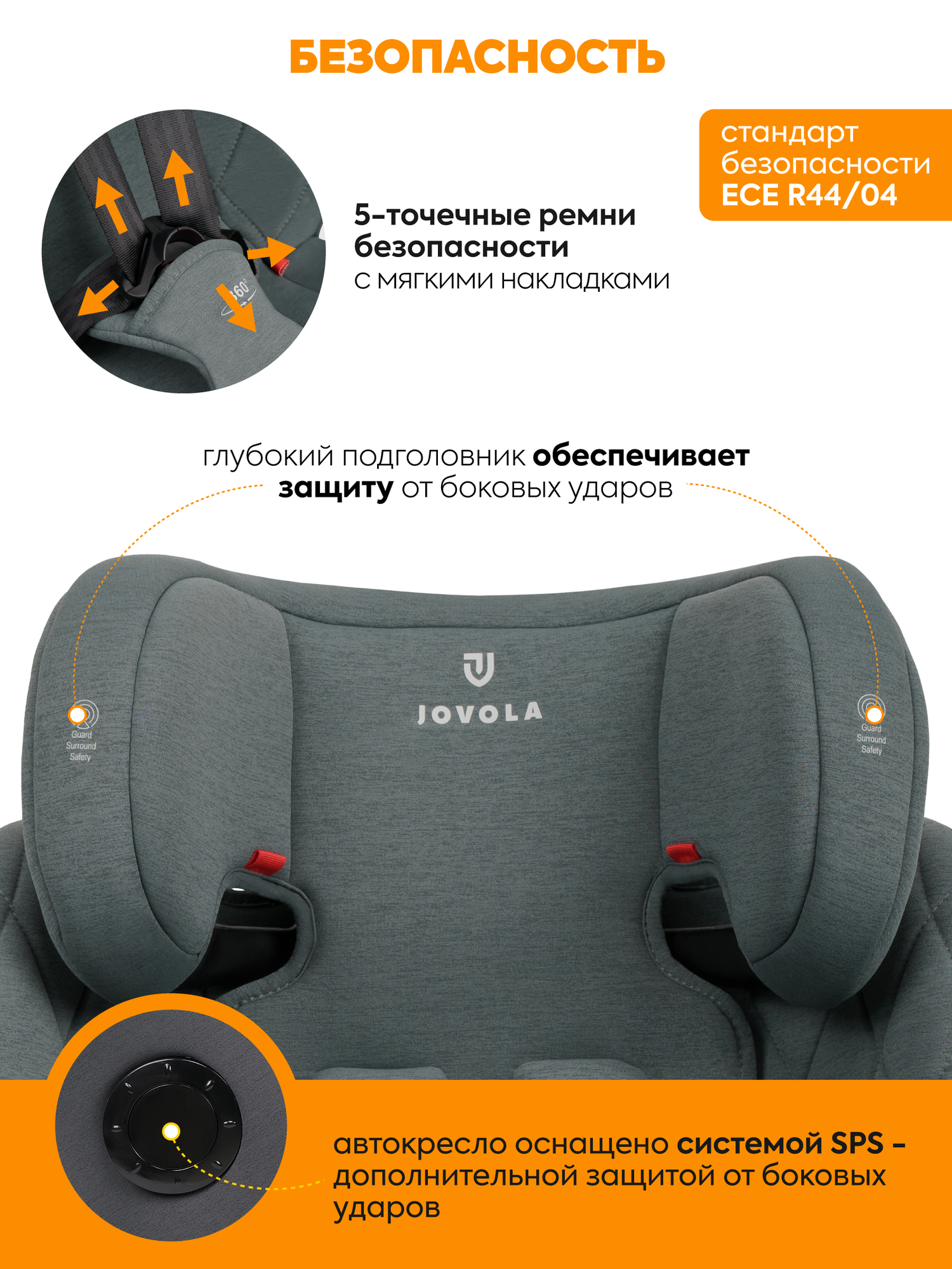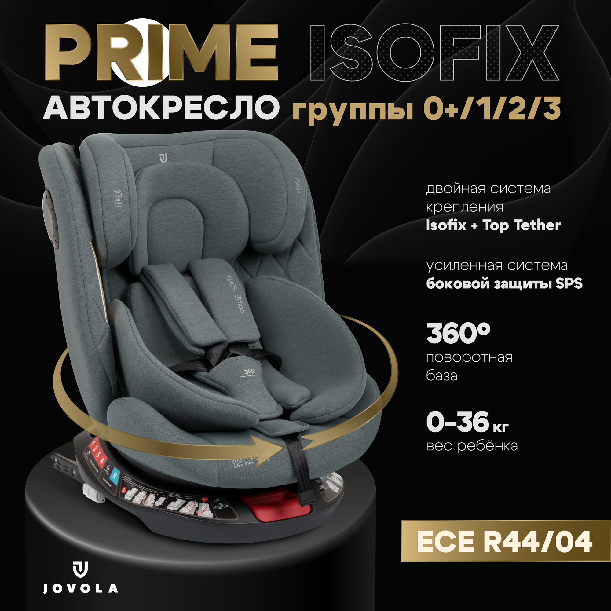 Автокресло детское Jovola Prime Isofix для новорожденных от 0 до 36 кг, группа 0+1+2+3, серый