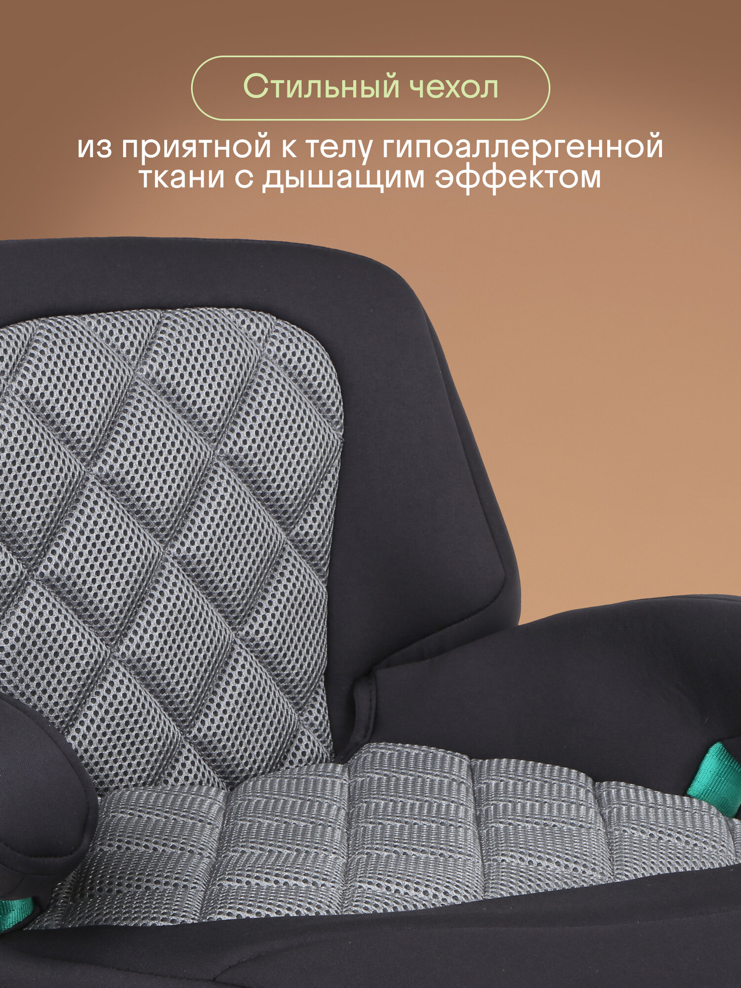 Купить Бустер детский автомобильный Kidzi BRO i-SIZE со спинкой и ISOFIX (автокресло для детей 125-150 см, 22-36 кг, с 6 до 12 лет), черный